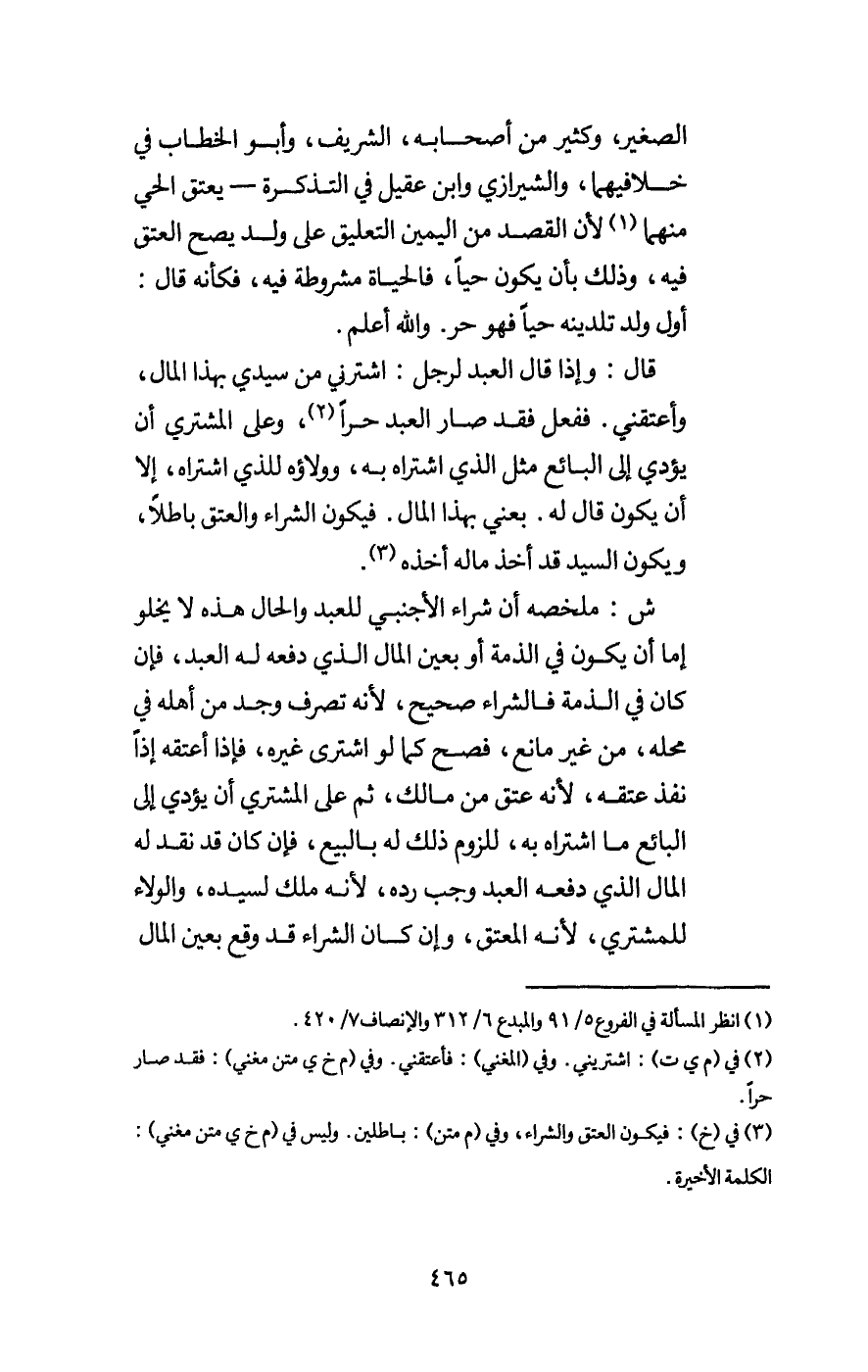 ش: ملخصه أن شراء الأجنبي للعبد والحال هذه لا يخلو إما أن يكون في الذمة أو بعين المال الذي دفعه له العبد، فإن كان في الذمة فالشراء صحيح، لأن تصرف وجد من أهله في محله، من غير مانع، فصح كما لو اشترى غيره، فإذا أعتقه إذا نفذ عتقه، لأن عتق من مالك، ثم على المشتري أن يؤدي إلى البائع ما اشتراه به، للزوم ذلك له بالبيع، فإن كان قد نقد له المال الذي دفعه العبد وجب رده، لأنه ملك لسيده، والولاء للمشتري، لأنه المعتق، وإن كان الشراء قد وقع بعين المال