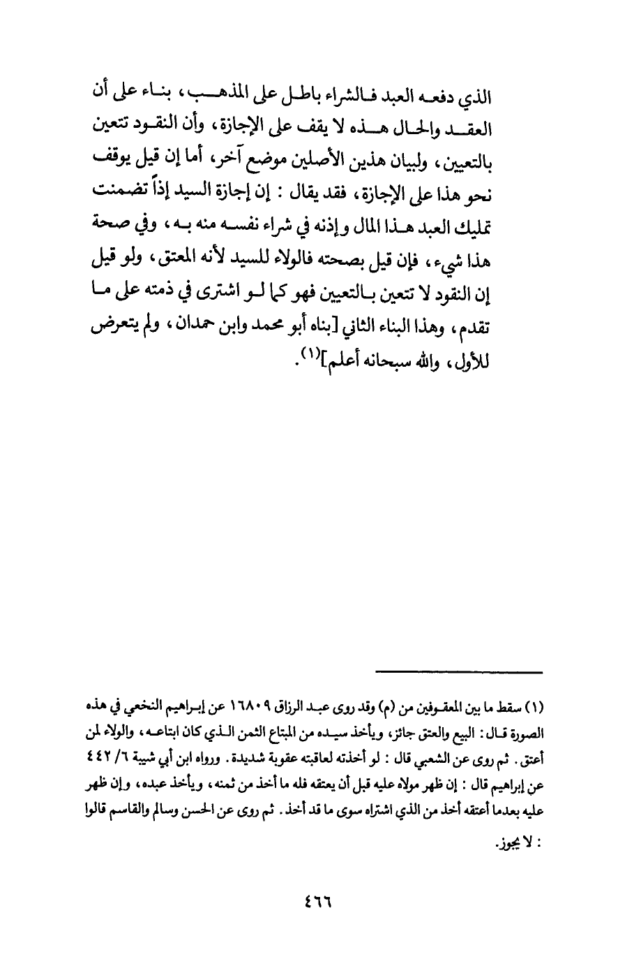 الذي دفعه العبد فالشراء باطل على المذهب، بناء على أن العقد والحال هذه لا يقف على الإجازة، وأن النقود تتعين بالتعيين، ولبيان هذين الأصلين موضع آخر، أما إن قيل يوقف نحو هذا على الإجازة، فقد يقال: إن إجازة السيد إذا تضمنت تمليك العبد هذا المال وإذنه في شراء نفسه منه به، وفي صحة هذا شيء، فإن قيل بصحته فالولاء للسيد لأنه المعتق، ولو قيل إن النقود لا تتعين بالتعيين فهو كما لو اشترى في ذمته على ما تقدم، وهذا البناء الثاني [بناه أبو محمد وابن حمدان، ولم يتعرض للأول، والله سبحانه أعلم] .