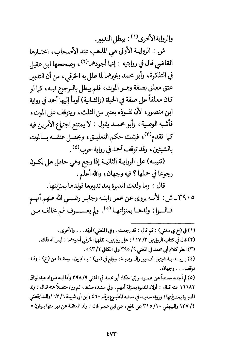 ش: الرواية الأولى هي المذهب عند الأصحاب، اختارها القاضي قال في روايتيه: إنها أجودهما، وصححها ابن عقيل في التذكرة، وأبو محمد وغيرهما لما علل به الخرقي، من أن التدبير عتق معلق بصفة وهو الموت، فلم يبطل بالرجوع فيه، كما لو كان معلقا على صفة في الحياة (والثانية) أومأ إليها أحمد في رواية ابن منصور، لأن نفوذه يعتبر من الثلث، ويتوقف على الموت، فأشبه الوصية، وأبو محمد يقول: لا يمتنع اجتماع الأمرين فيه كما تقدم، فيثبت حكم التعليق، ويحصل عتقه بالموت بالشيئين، وقد توقف أحمد في رواية حرب.