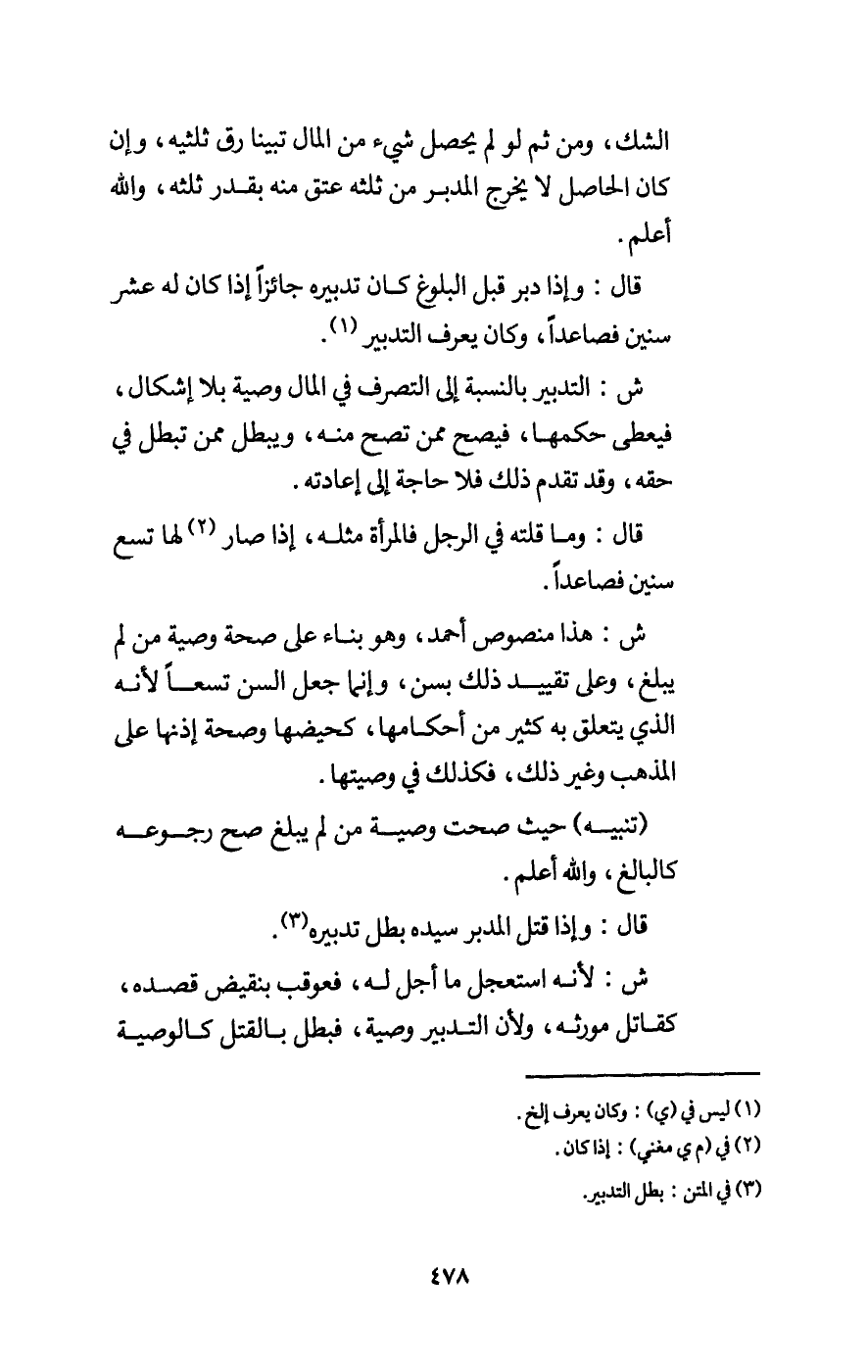 قال: وإذا دبر قبل البلوغ كان تدبيره جائزا إذا كان له عشر سنين فصاعدا، وكان يعرف التدبير.
