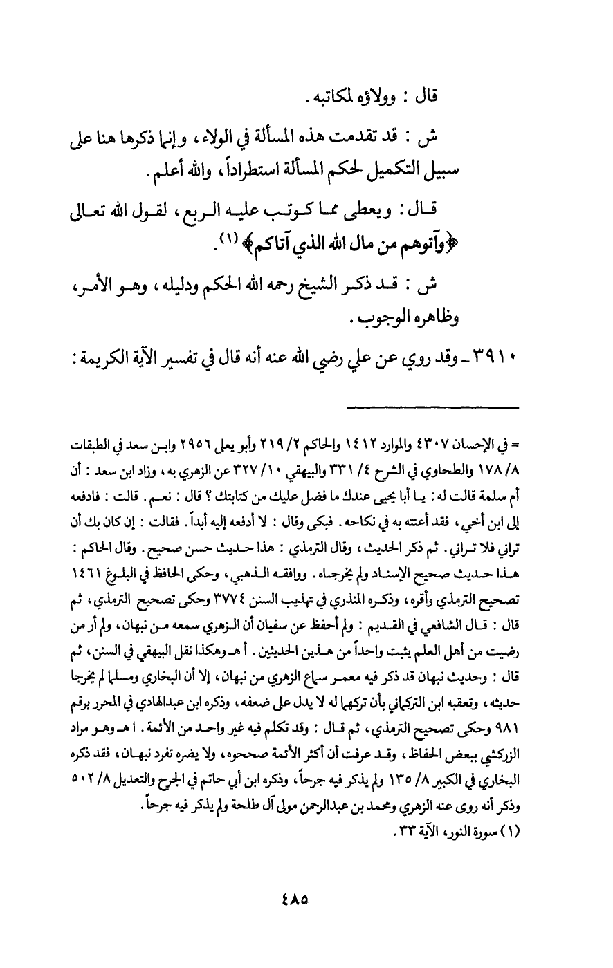 ش: قد تقدمت هذه المسألة في الولاء، وإنما ذكرها هنا على سبيل التكميل لحكم المسألة استطرادا، والله أعلم.
