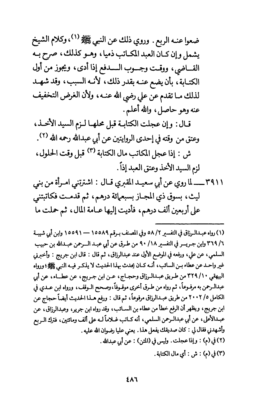 3911 - لما روي عن أبي سعيد المقبري قال: اشترتني امرأة من بني ليث، بسوق ذي المجاز بسبعمائة درهم، ثم قدمت فكاتبتني على أربعين ألف درهم، فأديت إليها عامة المال، ثم حملت ما