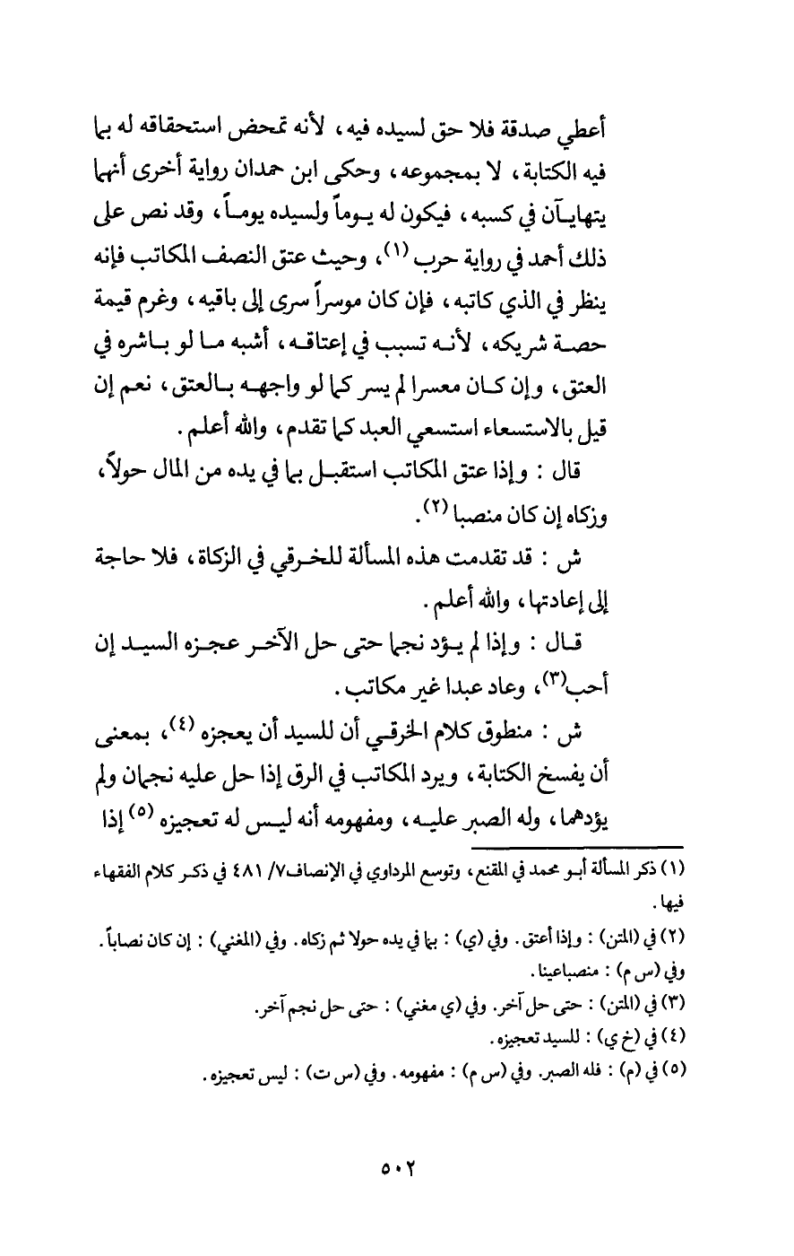 ش: منطوق كلام الخرقي أن للسيد أن يعجزه، بمعنى أن يفسخ الكتابة، ويرد المكاتب في الرق إذا حل عليه نجمان ولم يؤدهما، وله الصبر عليه، ومفهومه أنه ليس له تعجيزه إذا