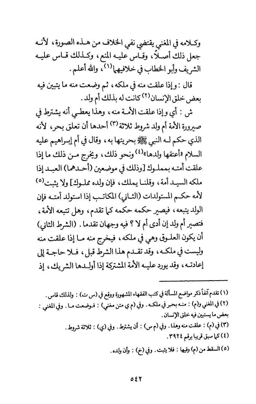ش: أي وإذا علقت الأمة منه، وهذا يعطي أنه يشترط في صيرورة الأمة أم ولد شروط ثلاثة أحدها أن تعلق بحر، لأنه الذي حكم له النبي - صَلَّى اللَّهُ عَلَيْهِ وَسَلَّمَ - بحريتها به، «وقال في أم إبراهيم - عَلَيْهِ السَّلَامُ -: «أعتقها ولدها» ونحو ذلك، ويخرج من ذلك ما إذا علقت أمته بمملوك [وذلك في موضعين (أحدهما) العبد إذا ملكه السيد أمة، وقلنا يملك، فإن ولده مملوك] ولا يثبت لأمه حكم المستولدات (الثاني) المكاتب إذا استولد أمته فإن الولد يتبعه، فيصير حكمه حكمه كما تقدم، وهل تتبعه الأمة، فتصير أم ولد إن أدى أم لا؟ فيه وجهان تقدما. (الشرط الثاني) أن يكون العلوق وهي في ملكه، فيخرج منه ما إذا علقت منه وليست في ملكه، وقد تقدم هذا الشرط قبل، فلا حاجة إلى إعادته، وقد يورد عليه الأمة المشتركة إذا أولدها الشريك، إذ