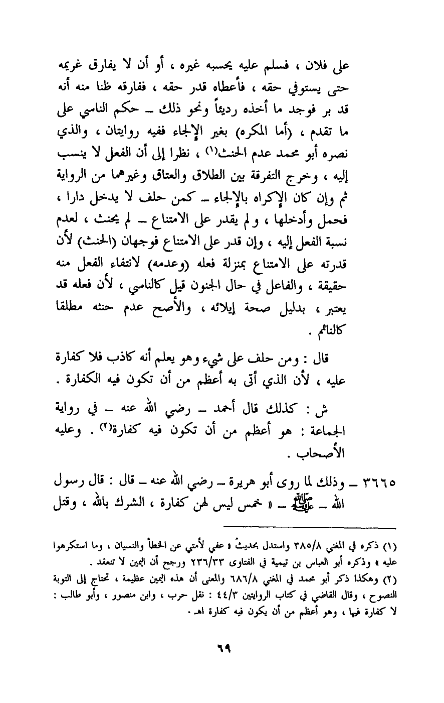 3665 - وذلك لما روى أبو هريرة - رَضِيَ اللَّهُ عَنْهُ - قال: قال رسول الله - صَلَّى اللَّهُ عَلَيْهِ وَسَلَّمَ -: «خمس ليس لهن كفارة: الشرك بالله، وقتل
