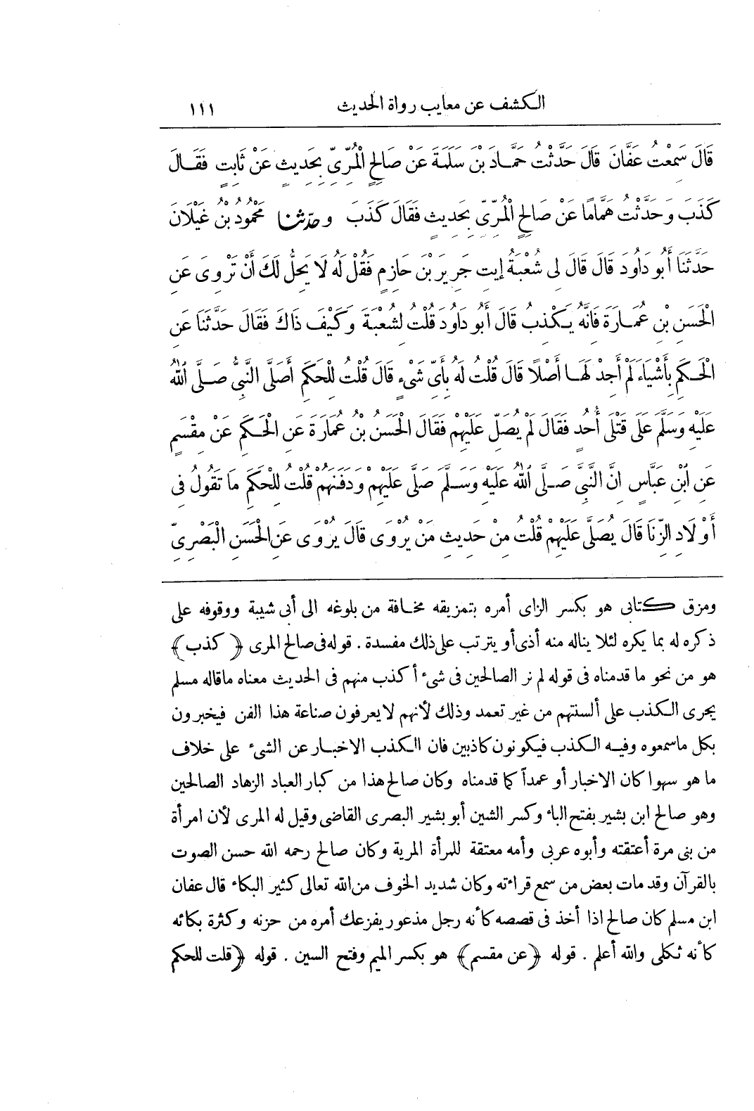 مَزِّقْ كِتَابِي هُوَ بِكَسْرِ الزَّايِ أَمَرَهُ بِتَمْزِيقِهِ مَخَافَةً مِنْ بُلُوغِهِ إِلَى أَبِي شَيْبَةَ وَوُقُوفِهِ عَلَى ذِكْرِهِ لَهُ بِمَا يَكْرَهُ لِئَلَّا يَنَالَهُ مِنْهُ أَذًى أَوْ يَتَرَتَّبَ عَلَى ذَلِكَ مَفْسَدَةٌ قَوْلُهُ فِي صَالِحٍ الْمُرِّيِّ (كَذَبَ) هُوَ مِنْ نَحْوِ مَا قَدَّمْنَاهُ فِي قَوْلِهِ لَمْ نَرَ الصَّالِحِينَ فِي شَيْءٍ أَكْذَبَ مِنْهُمْ فِي الْحَدِيثِ مَعْنَاهُ مَا قَالَهُ مُسْلِمٌ يَجْرِي الْكَذِبُ عَلَى أَلْسِنَتِهِمْ مِنْ غَيْرِ تَعَمُّدٍ وَذَلِكَ لِأَنَّهُمْ لَا يَعْرِفُونَ صِنَاعَةَ هَذَا الْفَنِّ فَيُخْبِرُونَ بِكُلِّ مَا سَمِعُوهُ وَفِيهِ الْكَذِبُ فَيَكُونُونَ كَاذِبِينَ فَإِنَّ الْكَذِبَ الْإِخْبَارُ عَنِ الشَّيْءِ عَلَى خِلَافِ مَا هُوَ سَهْوًا كَانَ الْإِخْبَارُ أَوْ عَمْدًا كَمَا قَدَّمْنَاهُ وَكَانَ صَالِحٌ هَذَا مِنْ كِبَارِ الْعُبَّادِ الزُّهَّادِ الصَّالِحِينَ وَهُوَ صَالِحُ بْنُ بَشِيرٍ بِفَتْحِ الْبَاءِ وَكَسْرِ الشِّينِ أَبُو بَشِيرٍ الْبَصْرِيُّ الْقَاضِي وَقِيلَ لَهُ الْمُرِّيُّ لِأَنَّ امْرَأَةً مِنْ بَنِي مُرَّةَ أَعْتَقَتْهُ وَأَبُوهُ عَرَبِيٌّ وَأُمُّهُ مُعْتَقَةٌ لِلْمَرْأَةِ الْمُرِّيَّةِ وَكَانَ صَالِحٌ رَحِمَهُ اللَّهُ حَسَنَ الصَّوْتِ بِالْقُرْآنِ وَقَدْ مَاتَ بَعْضُ مَنْ سَمِعَ قِرَاءَتَهُ وَكَانَ شَدِيدَ الْخَوْفِ مِنَ اللَّهِ تَعَالَى كَثِيرَ الْبُكَاءِ قَالَ عَفَّانُ بْنُ مُسْلِمٍ كَانَ صَالِحٌ إِذَا أَخَذَ فِي قَصَصِهِ كَأَنَّهُ رَجُلٌ مَذْعُورٌ يُفْزِعُكَ أَمْرُهُ مِنْ حُزْنِهِ وَكَثْرَةِ بُكَائِهِ كَأَنَّهُ ثَكْلَى وَاللَّهُ أَعْلَمُ قَوْلُهُ (عَنْ مِقْسَمٍ) هُوَ بِكَسْرِ الميم وفتح السين قوله (قلت للحكم