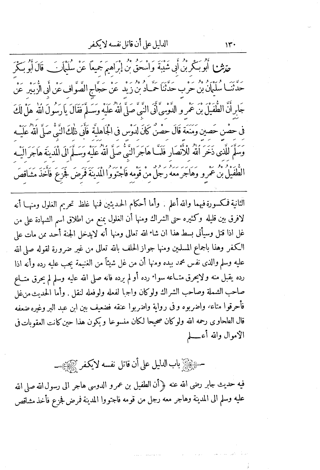 (باب الدَّلِيلِ عَلَى أَنَّ قَاتِلَ نَفْسَهُ لَا يَكْفُرُ