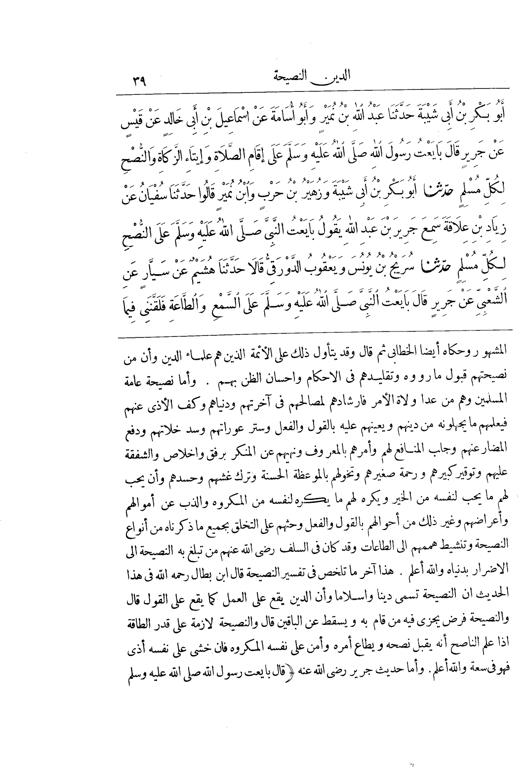 [56] وَأَمَّا حَدِيثُ جَرِيرٍ رَضِيَ اللَّهُ عَنْهُ (قَالَ بَايَعْتُ رَسُولَ اللَّهِ صَلَّى اللَّهُ عَلَيْهِ وَسَلَّمَ