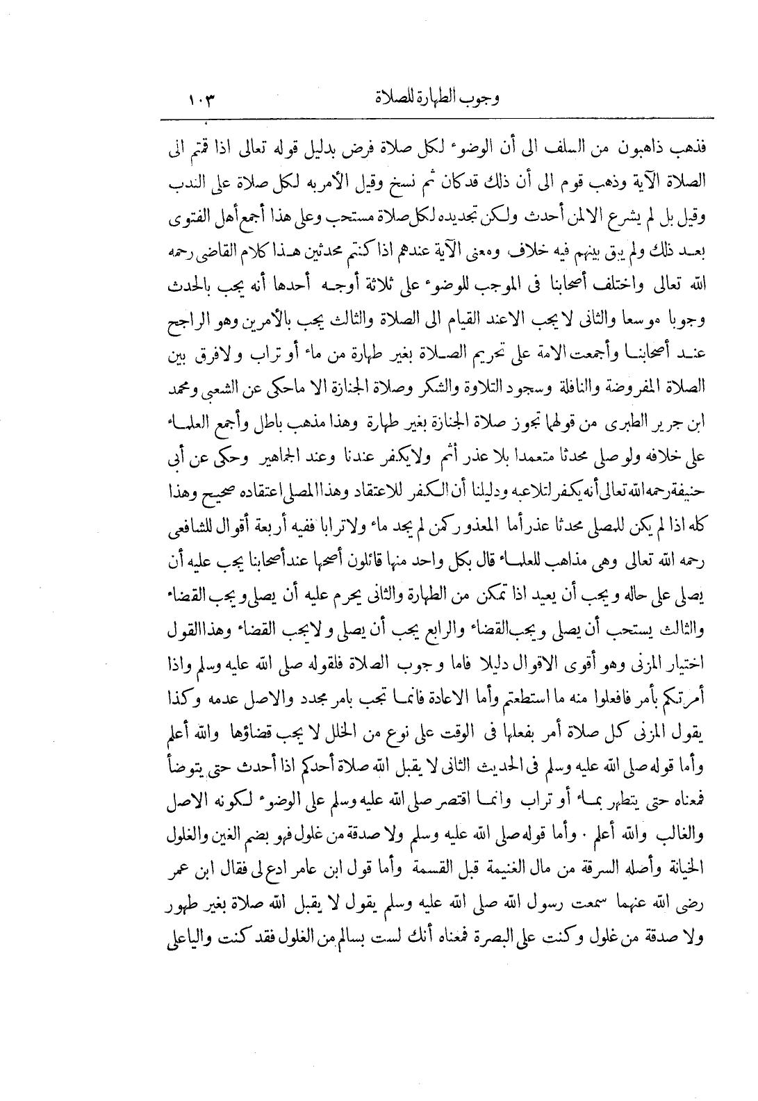 فَذَهَبَ ذَاهِبُونَ مِنَ السَّلَفِ إِلَى أَنَّ الْوُضُوءَ لِكُلِّ صَلَاةٍ فَرْضٌ بِدَلِيلِ قَوْلِهِ تَعَالَى إِذَا قُمْتُمْ إِلَى الصَّلَاةِ الْآيَةَ وَذَهَبَ قَوْمٌ إِلَى أَنَّ ذَلِكَ قَدْ كَانَ ثُمَّ نُسِخَ وَقِيلَ الْأَمْرُ بِهِ لِكُلِّ صَلَاةٍ عَلَى النَّدْبِ وَقِيلَ بَلْ لَمْ يُشْرَعْ إِلَّا لِمَنْ أَحْدَثَ وَلَكِنَّ تَجْدِيدَهُ لِكُلِّ صَلَاةٍ مُسْتَحَبٌّ وَعَلَى هَذَا أَجْمَعَ أَهْلُ الْفَتْوَى بَعْدَ ذَلِكَ وَلَمْ يَبْقَ بَيْنَهُمْ فِيهِ خِلَافٌ وَمَعْنَى الْآيَةِ عِنْدَهُمْ إِذَا كُنْتُمْ مُحْدِثِينَ هَذَا كَلَامُ الْقَاضِي رَحِمَهُ اللَّهُ تَعَالَى وَاخْتَلَفَ أَصْحَابُنَا فِي الْمُوجِبِ لِلْوُضُوءِ عَلَى ثَلَاثَةِ أَوْجُهٍ أَحَدُهَا أَنَّهُ يَجِبُ بِالْحَدَثِ وُجُوبًا مُوَسَّعًا وَالثَّانِي لَا يَجِبُ إِلَّا عِنْدَ الْقِيَامِ إِلَى الصَّلَاةِ وَالثَّالِثُ يَجِبُ بِالْأَمْرَيْنِ وَهُوَ الرَّاجِحُ عِنْدَ أَصْحَابِنَا وَأَجْمَعَتِ الْأُمَّةُ عَلَى تَحْرِيمِ الصَّلَاةِ بِغَيْرِ طَهَارَةٍ مِنْ مَاءٍ أَوْ تُرَابٍ وَلَا فَرْقَ بَيْنَ الصَّلَاةِ الْمَفْرُوضَةِ وَالنَّافِلَةِ وَسُجُودِ التِّلَاوَةِ وَالشُّكْرِ وَصَلَاةِ الْجِنَازَةِ إِلَّا مَا حُكِيَ عَنِ الشَّعْبِيِّ وَمُحَمَّدِ بْنِ جَرِيرٍ الطَّبَرِيِّ مِنْ قَوْلِهِمَا تَجُوزُ صَلَاةُ الْجِنَازَةِ بِغَيْرِ طَهَارَةٍ وَهَذَا مَذْهَبٌ بَاطِلٌ وَأَجْمَعَ الْعُلَمَاءُ عَلَى خِلَافِهِ وَلَوْ صَلَّى مُحْدِثًا مُتَعَمِّدًا بِلَا عُذْرٍ أَثِمَ وَلَا يَكْفُرُ عِنْدنَا وَعِنْدَ الْجَمَاهِيرِ وَحُكِيَ عَنْ أَبِي حَنِيفَةَ رَحِمَهُ اللَّهُ تَعَالَى أَنَّهُ يَكْفُرُ لِتَلَاعُبِهِ وَدَلِيلُنَا أَنَّ الْكُفْرَ لِلِاعْتِقَادِ وَهَذَا الْمُصَلِّي اعْتِقَادُهُ صَحِيحٌ وَهَذَا كُلُّهُ إِذَا لَمْ يَكُنْ لِلْمُصَلِّي مُحْدِثًا عُذْرٌ أَمَّا الْمَعْذُورُ كَمَنْ لَمْ يَجِدْ مَاءً وَلَا تُرَابًا فَفِيهِ أَرْبَعَةُ أَقْوَالٍ لِلشَّافِعِيِّ رَحِمَهُ اللَّهُ تَعَالَى وَهِيَ مَذَاهِبُ لِلْعُلَمَاءِ قَالَ بِكُلِّ وَاحِدٍ مِنْهَا قَائِلُونَ أَصَحُّهَا عِنْدَ أَصْحَابِنَا يَجِبُ عَلَيْهِ أَنْ يُصَلِّيَ عَلَى حَالِهِ وَيَجِبُ أَنْ يُعِيدَ إِذَا تَمَكَّنَ مِنَ الطَّهَارَةِ وَالثَّانِي يَحْرُمُ عَلَيْهِ أن يصلي ويحب الْقَضَاءُ وَالثَّالِثُ يُسْتَحَبُّ أَنْ يُصَلِّيَ وَيَجِبُ الْقَضَاءُ وَالرَّابِعُ يَجِبُ أَنْ يُصَلِّيَ وَلَا يَجِبُ الْقَضَاءُ وَهَذَا الْقَوْلُ اخْتِيَارُ الْمُزَنِيِّ وَهُوَ أَقْوَى الْأَقْوَالِ دَلِيلًا فَأَمَّا وُجُوبُ الصَّلَاةِ فَلِقَوْلِهِ صَلَّى اللَّهُ عَلَيْهِ وَسَلَّمَ وَإِذَا أَمَرْتُكُمْ بِأَمْرٍ فَافْعَلُوا مِنْهُ مَا اسْتَطَعْتُمْ وَأَمَّا الْإِعَادَةُ فَإِنَّمَا تَجِبُ بِأَمْرٍ مُجَدَّدٍ وَالْأَصْلُ عَدَمُهُ وَكَذَا يَقُولُ الْمُزَنِيُّ كُلُّ صَلَاةٍ أُمِرَ بِفِعْلِهَا فِي الْوَقْتِ عَلَى نَوْعٍ مِنَ الْخَلَلِ لَا يَجِبُ قَضَاؤُهَا وَاللَّهُ أَعْلَمُ وَأَمَّا قَوْلُهُ صَلَّى اللَّهُ عَلَيْهِ وَسَلَّمَ فِي الْحَدِيثِ الثَّانِي لَا يَقْبَلُ اللَّهُ صَلَاةَ أَحَدِكُمْ إذا أحدث حتى يتوضأ فمعناه حَتَّى يَتَطَهَّرَ بِمَاءٍ أَوْ تُرَابٍ وَإِنَّمَا اقْتَصَرَ صَلَّى اللَّهُ عَلَيْهِ وَسَلَّمَ عَلَى الْوُضُوءِ لِكَوْنِهِ الْأَصْلَ وَالْغَالِبَ وَاللَّهُ أَعْلَمُ وَأَمَّا قَوْلُهُ صَلَّى اللَّهُ عَلَيْهِ وَسَلَّمَ وَلَا صَدَقَةٌ مِنْ غُلُولٍ فهو بضم الغين والغلول الْخِيَانَةُ وَأَصْلُهُ السَّرِقَةُ مِنْ مَالِ الْغَنِيمَةِ قَبْلَ القسمة وأما قول بن عامر ادع لى فقال بن عُمَرَ رَضِيَ اللَّهُ عَنْهُمَا سَمِعْتُ رَسُولَ اللَّهِ صَلَّى اللَّهُ عَلَيْهِ وَسَلَّمَ يَقُولُ لَا يَقْبَلُ اللَّهُ صَ