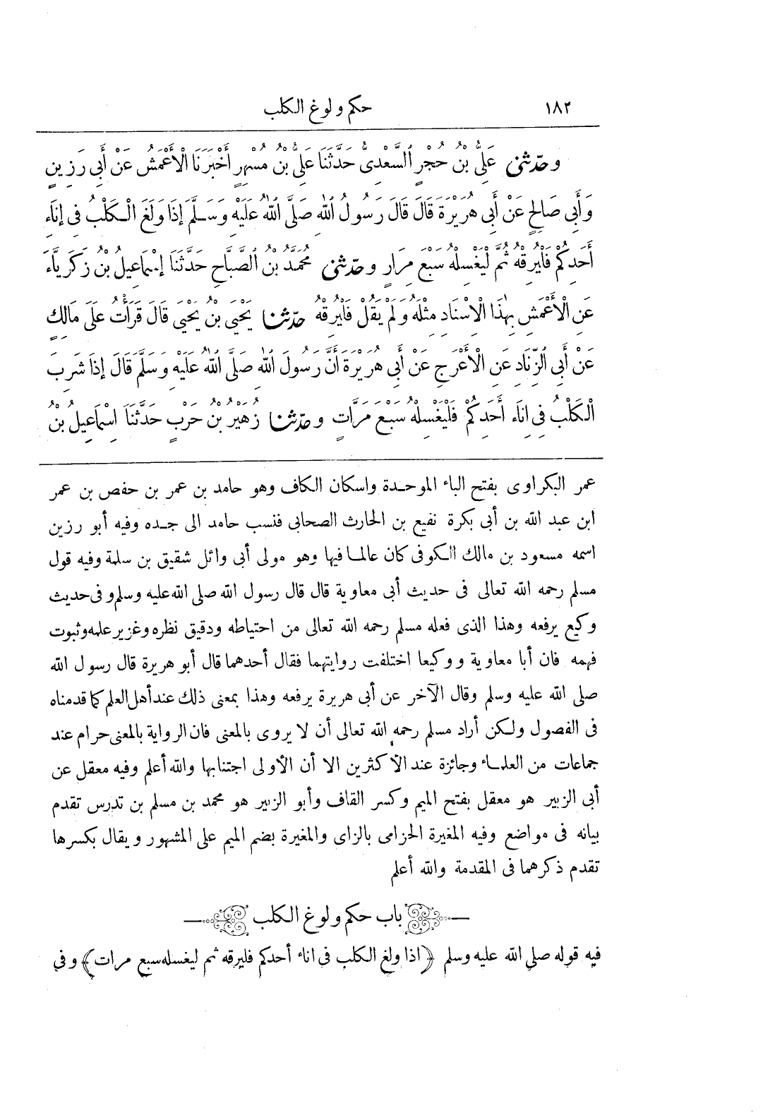 فِيهِ قَوْلُهُ صَلَّى اللَّهُ عَلَيْهِ وَسَلَّمَ (إِذَا وَلَغَ الْكَلْبُ فِي إِنَاءِ أَحَدِكُمْ فَلْيُرِقْهُ ثُمَّ لْيَغْسِلْهُ سَبْعَ مَرَّاتٍ) وفى