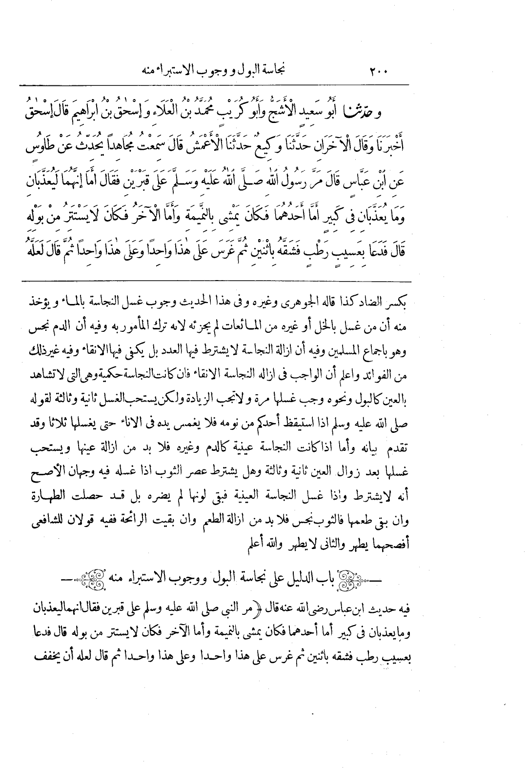 (باب الدَّلِيلِ عَلَى نَجَاسَةِ الْبَوْلِ وَوُجُوبُ الاستبراء منه)