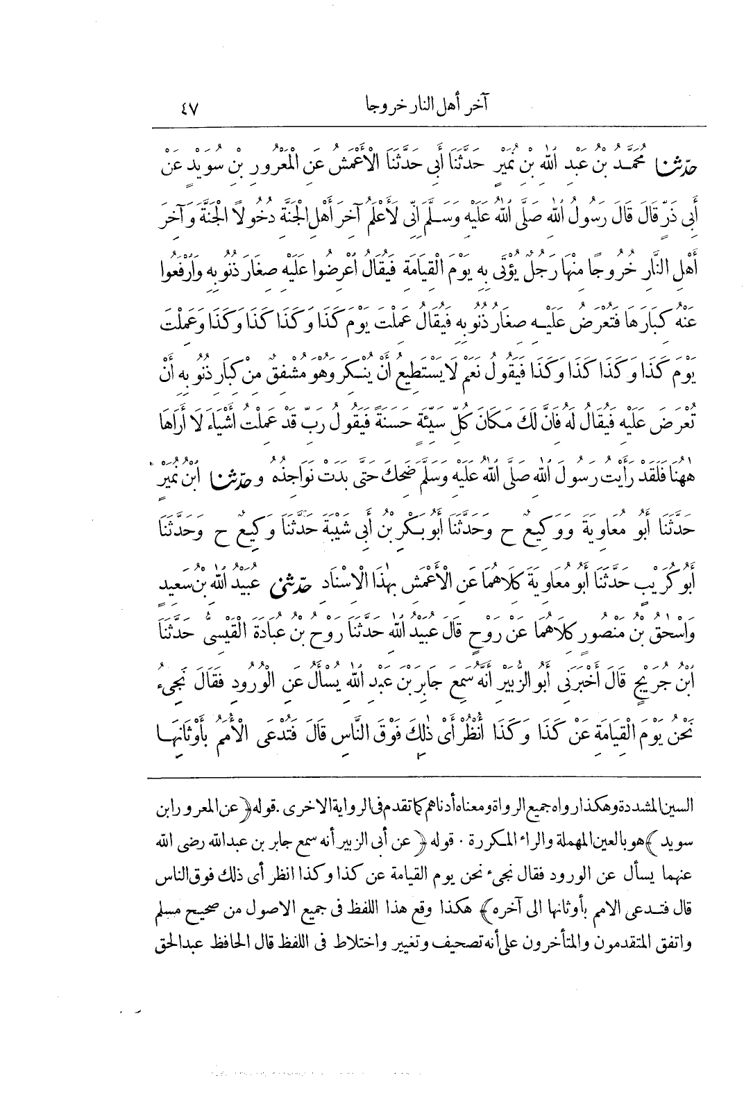 [191] قَوْلُهُ (عَنْ أَبِي الزُّبَيْرِ أَنَّهُ سَمِعَ جَابِرَ بْنَ عَبْدِ اللَّهِ رَضِيَ اللَّهُ عنهما يسأل عن الورود فقال نجئ نَحْنُ يَوْمَ الْقِيَامَةِ عَنْ كَذَا وَكَذَا انْظُرْ أَيْ ذَلِكَ فَوْقَ النَّاسِ قَالَ فَتُدْعَى الْأُمَمُ بِأَوْثَانِهَا إِلَى آخِرِهِ) هَكَذَا وَقَعَ هَذَا اللَّفْظُ فِي جَمِيعِ الْأُصُولِ مِنْ صَحِيحِ مُسْلِمٍ وَاتَّفَقَ الْمُتَقَدِّمُونَ وَالْمُتَأَخِّرُونَ عَلَى أَنَّهُ تَصْحِيفٌ وَتَغْيِيرٌ وَاخْتِلَاطٌ فِي اللَّفْظِ قَالَ الْحَافِظُ عَبْدُ الْحَقِّ