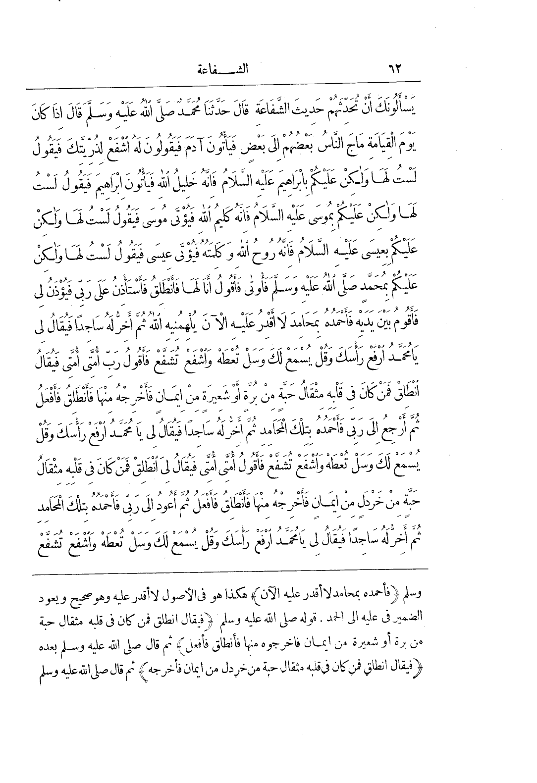 وَسَلَّمَ (فَأَحْمَدُهُ بِمَحَامِدَ لَا أَقْدِرُ عَلَيْهِ الْآنَ) هَكَذَا هُوَ فِي الْأُصُولِ لَا أَقْدِرُ عَلَيْهِ وَهُوَ صَحِيحٌ وَيَعُودُ الضَّمِيرُ فِي عَلَيْهِ إِلَى الْحَمْدِ قَوْلُهُ صَلَّى اللَّهُ عَلَيْهِ وَسَلَّمَ (فَيُقَالُ انْطَلِقْ فَمَنْ كَانَ فِي قَلْبِهِ مِثْقَالُ حَبَّةٍ مِنْ بُرَّةٍ أَوْ شَعِيرَةٍ مِنْ إِيمَانٍ فَأَخْرِجُوهُ مِنْهَا فَأَنْطَلِقُ فَأَفْعَلُ) ثُمَّ قَالَ صَلَّى اللَّهُ عَلَيْهِ وَسَلَّمَ بَعْدَهُ (فَيُقَالُ انْطَلِقْ فَمَنْ كَانَ فِي قَلْبِهِ مِثْقَالُ حَبَّةٍ مِنْ خَرْدَلٍ مِنْ إِيمَانٍ فَأَخْرِجْهُ) ثُمَّ قَالَ صَلَّى اللَّهُ عَلَيْهِ وسلم