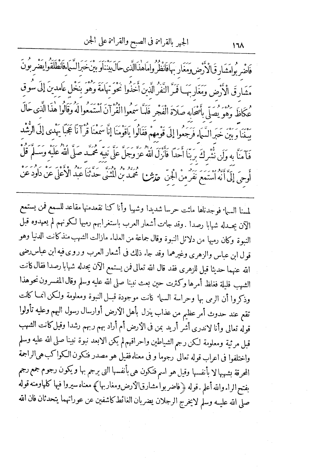 لَمَسْنَا السَّمَاءَ فَوَجَدْنَاهَا مُلِئَتْ حَرَسًا شَدِيدًا وَشُهُبًا وَأَنَّا كُنَّا نَقْعُدُ مِنْهَا مَقَاعِدَ لِلسَّمْعِ فَمَنْ يَسْتَمِعِ الْآنَ يَجِدْ لَهُ شِهَابًا رَصَدًا وَقَدْ جَاءَتْ أَشْعَارُ الْعَرَبِ بِاسْتِغْرَابِهِمْ رَمْيَهَا لِكَوْنِهِمْ لَمْ يَعْهَدُوهُ قَبْلَ النُّبُوَّةِ وَكَانَ رَمْيُهَا مِنْ دَلَائِلِ النبوة وقال جماعة من العلماء مازالت الشهب منذ كانت الدنيا وهو قول بن عَبَّاسٍ وَالزُّهْرِيِّ وَغَيْرِهِمَا وَقَدْ جَاءَ ذَلِكَ فِي أشعار العرب وروى فيه بن عَبَّاسٍ رَضِيَ اللَّهُ عَنْهُمَا حَدِيثًا قِيلَ لِلزُّهْرِيِّ فقد قال الله تعالى فمن يستمع الآن يجدله شهابا رصدا فَقَالَ كَانَتِ الشُّهُبُ قَلِيلَةً فَغَلُظَ أَمْرُهَا وَكَثُرَتْ حِينَ بُعِثَ نَبِيُّنَا صَلَّى اللَّهُ عَلَيْهِ وَسَلَّمَ وَقَالَ الْمُفَسِّرُونَ نَحْوَ هَذَا وَذَكَرُوا أَنَّ الرَّمْيَ بِهَا وَحِرَاسَةَ السَّمَاءِ كَانَتْ مَوْجُودَةً قَبْلَ النُّبُوَّةِ وَمَعْلُومَةً وَلَكِنْ إِنَّمَا كَانَتْ تَقَعُ عِنْدَ حُدُوثِ أَمْرٍ عَظِيمٍ مِنْ عَذَابٍ يَنْزِلُ بِأَهْلِ الْأَرْضِ أَوْ إِرْسَالِ رَسُولٍ إِلَيْهِمْ وَعَلَيْهِ تَأَوَّلُوا قَوْلَهُ تَعَالَى وَأَنَّا لَا نَدْرِي أَشَرٌّ أُرِيدَ بِمَنْ فِي الْأَرْضِ أَمْ أَرَادَ بِهِمْ رَبُّهُمْ رَشَدًا وَقِيلَ كَانَتِ الشُّهُبُ قَبْلُ مَرْئِيَّةً وَمَعْلُومَةً لَكِنْ رجم الشياطين واحراقهم لم يكن الابعد نُبُوَّةِ نَبِيِّنَا صَلَّى اللَّهُ عَلَيْهِ وَسَلَّمَ وَاخْتَلَفُوا فِي إِعْرَابِ قَوْلِهِ تَعَالَى رُجُومًا وَفِي مَعْنَاهُ فَقِيلَ هُوَ مَصْدَرٌ فَتَكُونُ الْكَوَاكِبُ هِيَ الرَّاجِمَةُ الْمُحْرِقَةُ بِشُهُبِهَا لَا بِأَنْفُسِهَا وَقِيلَ هُوَ اسْمٌ فَتَكُونُ هِيَ بِأَنْفُسِهَا الَّتِي يُرْجَمُ بِهَا وَيَكُونُ رُجُومُ جَمْعَ رَجْمٍ بِفَتْحِ الرَّاءِ وَاللَّهُ أَعْلَمُ قَوْلُهُ فَاضْرِبُوا مَشَارِقَ الْأَرْضِ وَمَغَارِبِهَا مَعْنَاهُ سِيرُوا فِيهَا كُلِّهَا وَمِنْهُ قَوْلُهُ صَلَّى اللَّهُ عَلَيْهِ وَسَلَّمَ لَا يَخْرُجُ الرَّجُلَانِ يَضْرِبَانِ الْغَائِطَ كَاشِفَيْنِ عَنْ عَوْرَاتِهِمَا يَتَحَدَّثَانِ فَإِنَّ اللَّهَ