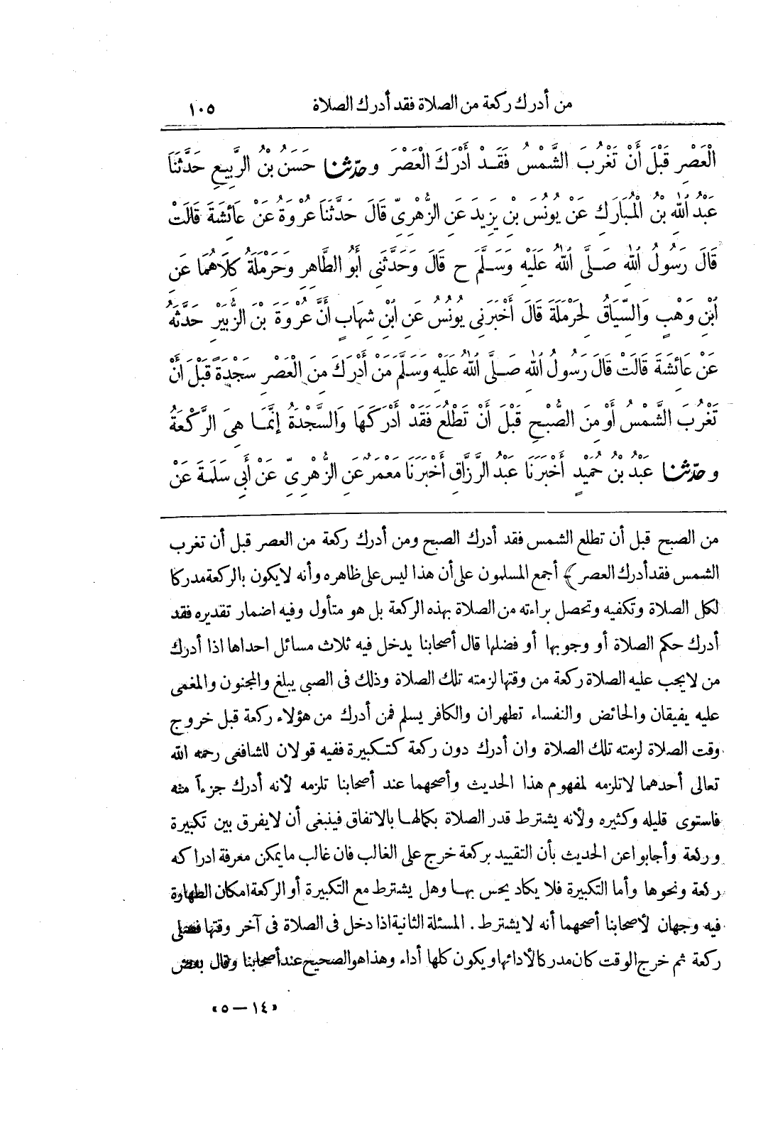 مِنَ الصُّبْحِ قَبْلَ أَنْ تَطْلُعَ الشَّمْسُ فَقَدْ أَدْرَكَ الصُّبْحَ وَمَنْ أَدْرَكَ رَكْعَةً مِنَ الْعَصْرِ قَبْلَ أَنْ تَغْرُبَ الشَّمْسُ فَقَدْ أَدْرَكَ الْعَصْرَ أَجْمَعَ الْمُسْلِمُونَ عَلَى أَنَّ هَذَا لَيْسَ عَلَى ظَاهِرِهِ وَأَنَّهُ لَا يَكُونُ بِالرَّكْعَةِ مُدْرِكًا لِكُلِّ الصَّلَاةِ وَتَكْفِيهِ وَتَحْصُلُ بَرَاءَتُهُ مِنَ الصَّلَاةِ بِهَذِهِ الرَّكْعَةِ بَلْ هُوَ مُتَأَوَّلٌ وَفِيهِ إِضْمَارٌ تَقْدِيرُهُ فَقَدْ أَدْرَكَ حُكْمَ الصَّلَاةِ أَوْ وُجُوبَهَا أَوْ فَضْلَهَا قَالَ أَصْحَابُنَا يَدْخُلُ فِيهِ ثَلَاثُ مَسَائِلَ إِحْدَاهَا إِذَا أَدْرَكَ مَنْ لَا يَجِبُ عَلَيْهِ الصَّلَاةُ رَكْعَةً مِنْ وَقْتِهَا لَزِمَتْهُ تِلْكَ الصَّلَاةُ وَذَلِكَ فِي الصَّبِيِّ يَبْلُغُ وَالْمَجْنُونِ وَالْمُغْمَى عَلَيْهِ يُفِيقَانِ وَالْحَائِضِ وَالنُّفَسَاءِ تَطْهُرَانِ وَالْكَافِرِ يُسْلِمُ فَمَنْ أَدْرَكَ مِنْ هَؤُلَاءِ رَكْعَةً قَبْلَ خُرُوجِ وَقْتِ الصَّلَاةِ لَزِمَتْهُ تِلْكَ الصَّلَاةُ وَإِنْ أَدْرَكَ دُونَ رَكْعَةٍ كَتَكْبِيرَةٍ فَفِيهِ قَوْلَانِ لِلشَّافِعِيِّ رَحِمَهُ اللَّهُ تَعَالَى أَحَدُهُمَا لَا تَلْزَمُهُ لِمَفْهُومِ هَذَا الْحَدِيثِ وَأَصَحُّهُمَا عِنْدَ أَصْحَابِنَا تَلْزَمُهُ لِأَنَّهُ أَدْرَكَ جُزْءًا مِنْهُ فَاسْتَوَى قَلِيلُهُ وَكَثِيرُهُ وَلِأَنَّهُ يُشْتَرَطُ قَدْرَ الصلاة بكمالها بالاتفاق فينبغي أن لا يُفَرَّقَ بَيْنَ تَكْبِيرَةٍ وَرَكْعَةٍ وَأَجَابُوا عَنِ الْحَدِيثِ بِأَنَّ التَّقْيِيدَ بِرَكْعَةٍ خَرَجَ عَلَى الْغَالِبِ فَإِنَّ غَالِبَ مَا يُمْكِنُ مَعْرِفَةُ إِدْرَاكِهِ رَكْعَةً وَنَحْوَهَا وَأَمَّا التَّكْبِيرَةُ فَلَا يَكَادُ يُحَسُّ بِهَا وَهَلْ يُشْتَرَطُ مَعَ التَّكْبِيرَةِ أَوِ الرَّكْعَةِ إِمْكَانَ الطَّهَارَةِ فِيهِ وَجْهَانِ لِأَصْحَابِنَا أَصَحُّهُمَا أَنَّهُ لَا يُشْتَرَطُ الْمَسْأَلَةُ الثَّانِيَةُ إِذَا دَخَلَ فِي الصَّلَاةِ فِي آخِرِ وَقْتِهَا فَصَلَّى رَكْعَةً ثُمَّ خَرَجَ الْوَقْتُ كَانَ مُدْرِكًا لِأَدَائِهَا وَيَكُونُ كُلُّهَا أَدَاءً وَهَذَا هُوَ الصَّحِيحُ عِنْدَ أَصْحَابِنَا وَقَالَ بَعْضُ