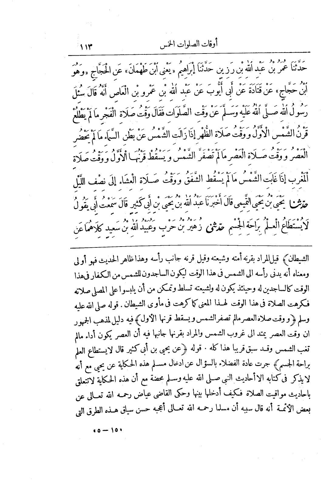 الشَّيْطَانِ قِيلَ الْمُرَادُ بِقَرْنِهِ أُمَّتُهُ وَشِيعَتُهُ وَقِيلَ قَرْنُهُ جَانِبُ رَأْسِهِ وَهَذَا ظَاهِرُ الْحَدِيثِ فَهُوَ أَوْلَى وَمَعْنَاهُ أَنَّهُ يُدْنِي رَأْسَهُ إِلَى الشَّمْسِ فِي هَذَا الْوَقْتِ لِيَكُونَ السَّاجِدُونَ لِلشَّمْسِ مِنَ الْكُفَّارِ فِي هَذَا الْوَقْتِ كَالسَّاجِدِينَ لَهُ وَحِينَئِذٍ يَكُونُ لَهُ وَلِشِيعَتِهِ تَسَلُّطٌ وَتَمَكُّنٌ مِنْ أَنْ يُلَبِّسُوا عَلَى الْمُصَلِّي صَلَاتَهُ فَكُرِهَتِ الصَّلَاةُ فِي هَذَا الْوَقْتِ لِهَذَا الْمَعْنَى كَمَا كُرِهَتْ فِي مَأْوَى الشَّيْطَانِ قَوْلُهُ صَلَّى اللَّهُ عَلَيْهِ وَسَلَّمَ وَوَقْتُ صَلَاةِ الْعَصْرِ مَا لَمْ تَصْفَرَّ الشَّمْسُ وَيَسْقُطُ قَرْنُهَا الْأَوَّلُ فِيهِ دَلِيلٌ لِمَذْهَبِ الْجُمْهُورِ أَنَّ وَقْتَ الْعَصْرِ يَمْتَدُّ إِلَى غُرُوبِ الشَّمْسِ وَالْمُرَادُ بِقَرْنِهَا جَانِبِهَا فِيهِ أَنَّ الْعَصْرَ يَكُونُ أَدَاءً مَا لَمْ تَغِبِ الشَّمْسُ وَقَدْ سَبَقَ قَرِيبًا هَذَا كُلُّهُ قَوْلُهُ عَنْ يَحْيَى بْنِ أَبِي كَثِيرٍ قَالَ لَا يُسْتَطَاعُ الْعِلْمُ بِرَاحَةِ الْجِسْمِ جَرَتْ عَادَةُ الْفُضَلَاءِ بِالسُّؤَالِ عَنْ إِدْخَالِ مُسْلِمٍ هَذِهِ الْحِكَايَةَ عَنْ يَحْيَى مَعَ أَنَّهُ لَا يَذْكُرُ فِي كِتَابِهِ إِلَّا أَحَادِيثَ النَّبِيِّ صَلَّى اللَّهُ عَلَيْهِ وَسَلَّمَ مَحْضَةً مَعَ أَنَّ هَذِهِ الْحِكَايَةَ لَا تَتَعَلَّقُ بِأَحَادِيثِ مَوَاقِيتِ الصَّلَاةِ فَكَيْفَ أَدْخَلَهَا بَيْنَهَا وَحَكَى الْقَاضِي عِيَاضٌ رَحِمَهُ اللَّهُ تَعَالَى عَنْ بَعْضِ الْأَئِمَّةِ أَنَّهُ قَالَ سَبَبُهُ أَنَّ مُسْلِمًا رَحِمَهُ اللَّهُ تَعَالَى أَعْجَبَهُ حُسْنُ سِيَاقِ هَذِهِ الطُّرُقِ الَّتِي