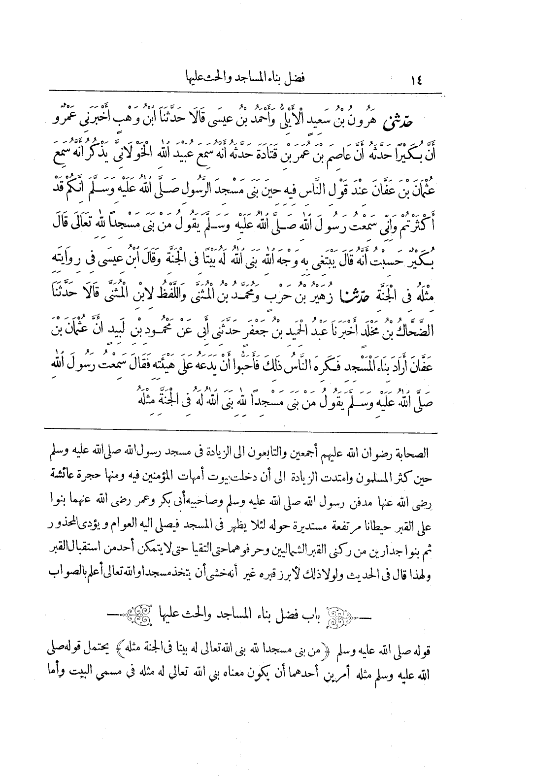 (باب فَضْلِ بِنَاءِ الْمَسَاجِدِ وَالْحَثِّ عَلَيْهَا)
