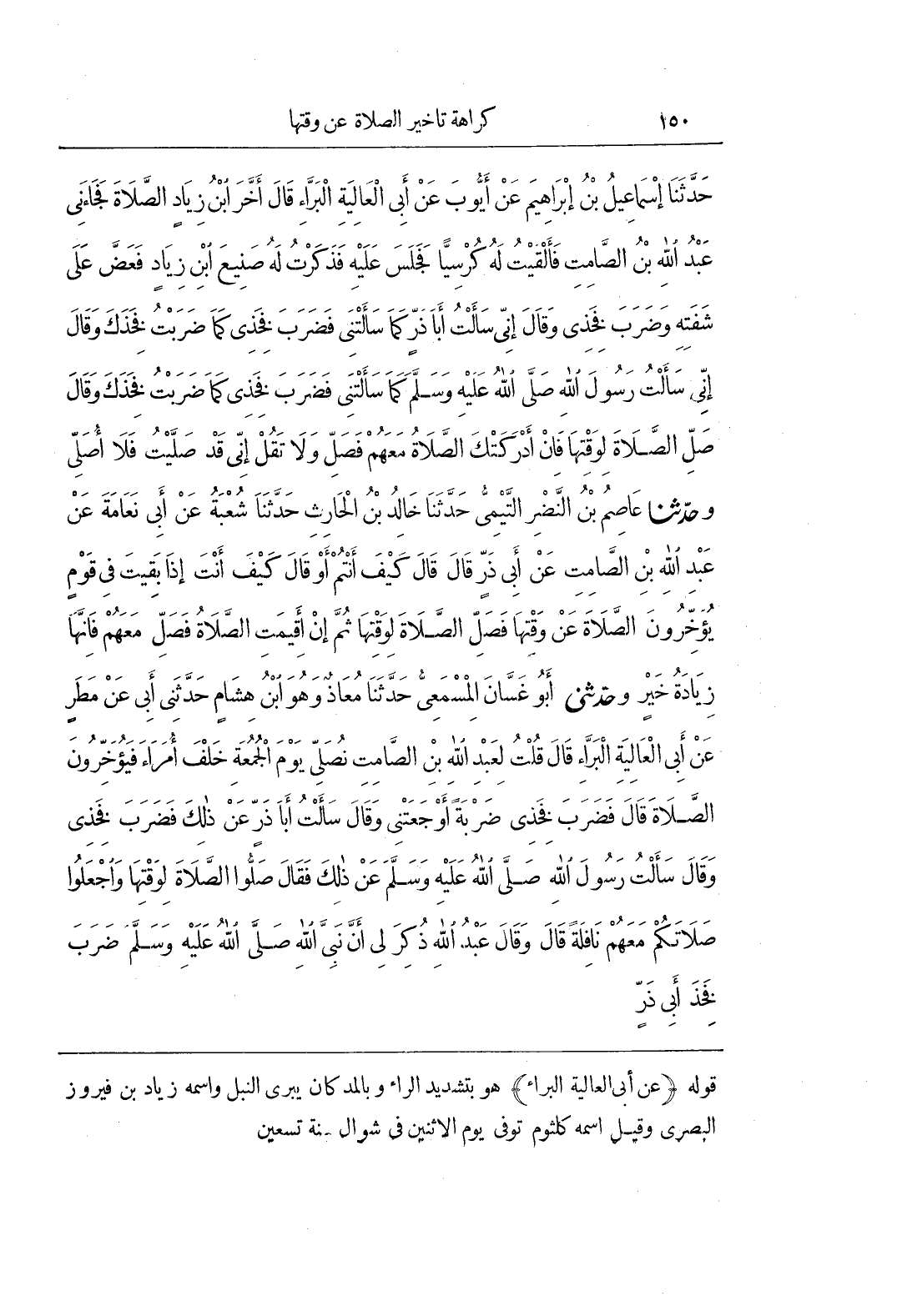 قَوْلُهُ عَنْ أَبِي الْعَالِيَةِ الْبَرَّاءِ هُوَ بِتَشْدِيدِ الرَّاءِ وَبِالْمَدِّ كَانَ يَبْرِي النَّبْلَ وَاسْمُهُ زِيَادُ بْنُ فَيْرُوزَ الْبَصْرِيُّ وَقِيلَ اسْمُهُ كُلْثُومٌ تُوُفِّيَ يوم الاثنين في شوال سنة تسعين
