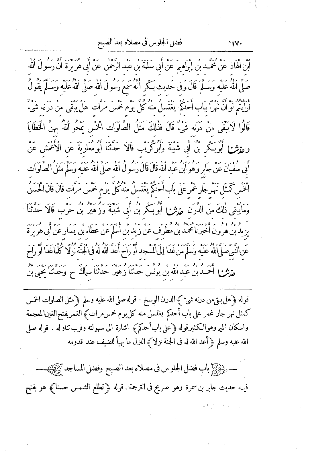 (باب فَضْلِ الْجُلُوسِ فِي مُصَلَّاهُ بَعْدَ الصُّبْحِ وَفَضْلِ الْمَسَاجِدِ)