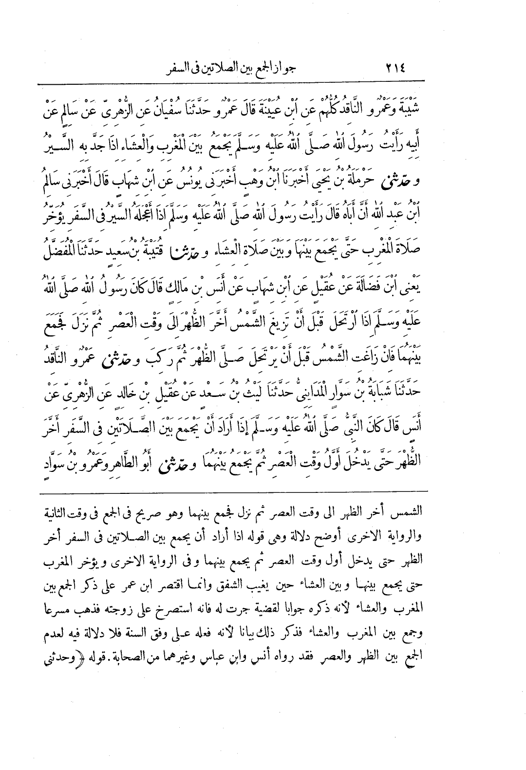 الشَّمْسُ أَخَّرَ الظُّهْرَ إِلَى وَقْتِ الْعَصْرِ ثُمَّ نَزَلَ فَجَمَعَ بَيْنَهُمَا وَهُوَ صَرِيحٌ فِي الْجَمْعِ فِي وَقْتِ الثَّانِيَةِ وَالرِّوَايَةُ الْأُخْرَى أَوْضَحُ دَلَالَةً وَهِيَ قَوْلُهُ إِذَا أَرَادَ أَنْ يَجْمَعَ بَيْنَ الصَّلَاتَيْنِ فِي السَّفَرِ أَخَّرَ الظُّهْرَ حَتَّى يَدْخُلَ أَوَّلُ وَقْتِ الْعَصْرِ ثُمَّ يَجْمَعُ بَيْنَهُمَا وَفِي الرِّوَايَةِ الْأُخْرَى وَيُؤَخِّرُ الْمَغْرِبَ حَتَّى يَجْمَعَ بَيْنَهَا وَبَيْنَ الْعِشَاءِ حِينَ يَغِيبُ الشَّفَقُ وَإِنَّمَا اقْتَصَرَ بن عُمَرَ عَلَى ذِكْرِ الْجَمْعِ بَيْنَ الْمَغْرِبِ وَالْعِشَاءِ لِأَنَّهُ ذَكَرَهُ جَوَابًا لِقَضِيَّةٍ جَرَتْ لَهُ فَإِنَّهُ اسْتَصْرَخَ عَلَى زَوْجَتِهِ فَذَهَبَ مُسْرِعًا وَجَمَعَ بَيْنَ الْمَغْرِبِ وَالْعِشَاءِ فَذَكَرَ ذَلِكَ بَيَانًا لِأَنَّهُ فَعَلَهُ عَلَى وَفْقِ السُّنَّةِ فَلَا دَلَالَةَ فِيهِ لِعَدَمِ الْجَمْعِ بَيْنَ الظُّهْرِ وَالْعَصْرِ فَقَدْ رَوَاهُ أَنَسٌ وبن عَبَّاسٍ وَغَيْرُهُمَا مِنَ الصَّحَابَةِ قَوْلُهُ وَحَدَّثَنِي