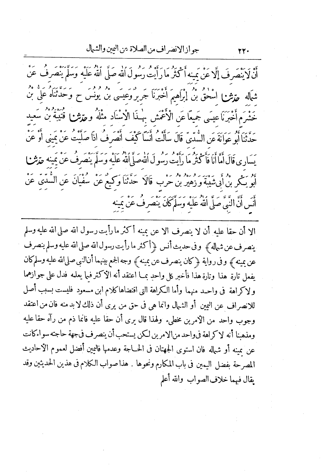 إلا أن حقا عليه أن لا يَنْصَرِفَ إِلَّا عَنْ يَمِينِهِ أَكْثَرُ مَا رَأَيْتُ رَسُولَ اللَّهِ صَلَّى اللَّهُ عَلَيْهِ وَسَلَّمَ يَنْصَرِفُ عَنْ شِمَالِهِ