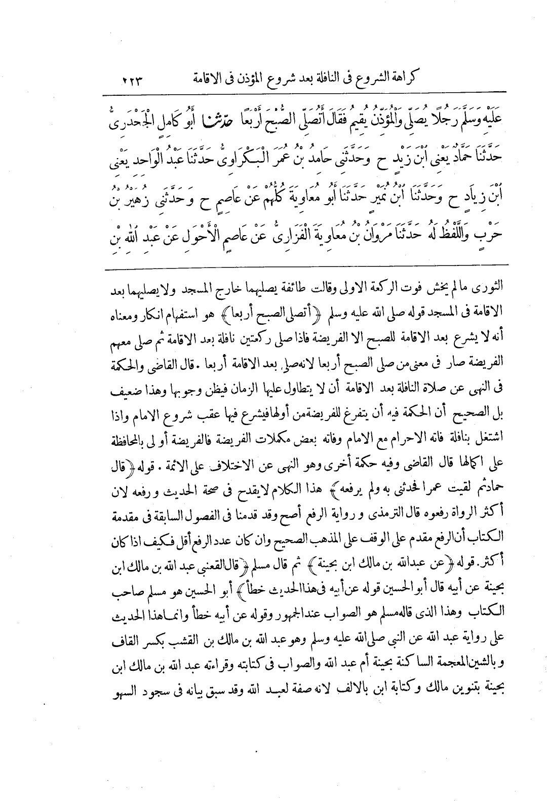[711] قَوْلُهُ عَنْ عَبْدِ اللَّهِ بن مالك بن بحينة ثم قال مسلم قال القعني عبد الله بن مالك بن بُحَيْنَةَ عَنْ أَبِيهِ قَالَ أَبُو الْحُسَيْنِ قَوْلُهُ عن أبيه فِي هَذَا الْحَدِيثِ خَطَأٌ أَبُو الْحُسَيْنِ هُوَ مُسْلِمٌ صَاحِبُ الْكِتَابِ وَهَذَا الَّذِي قَالَهُ مُسْلِمٌ هُوَ الصَّوَابُ عِنْدَ الْجُمْهُورِ وَقَوْلُهُ عَنِ أَبِيهِ خَطَأٌ وَإِنَّمَا هَذَا الْحَدِيثُ عَلَى رِوَايَةِ عَبْدِ اللَّهِ عَنِ النَّبِيِّ صَلَّى اللَّهُ عَلَيْهِ وَسَلَّمَ وَهُوَ عَبْدُ اللَّهِ بْنُ مَالِكِ بْنِ الْقِشْبِ بكسر القاف وبالشين المعجمة الساكنة بحينة أُمُّ عَبْدِ اللَّهِ وَالصَّوَابُ فِي كِتَابَتِهِ وَقِرَاءَتِهِ عبد الله بن مالك بن بحينة بتنوين مالك وكتابة بن بِالْأَلِفِ لِأَنَّهُ صِفَةٌ لِعَبْدِ اللَّهِ وَقَدْ سَبَقَ بَيَانُهُ فِي سُجُودِ السَّهْوِ