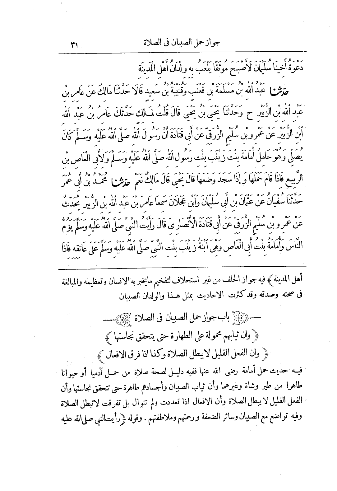 (باب جَوَازِ حَمْلِ الصبيان في الصلاة)