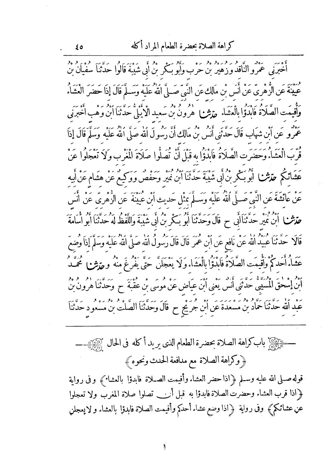 (باب كَرَاهَةُ الصَّلَاةِ بِحَضْرَةِ الطَّعَامِ الَّذِي يُرِيدُ أَكْلَهُ في الحال)
