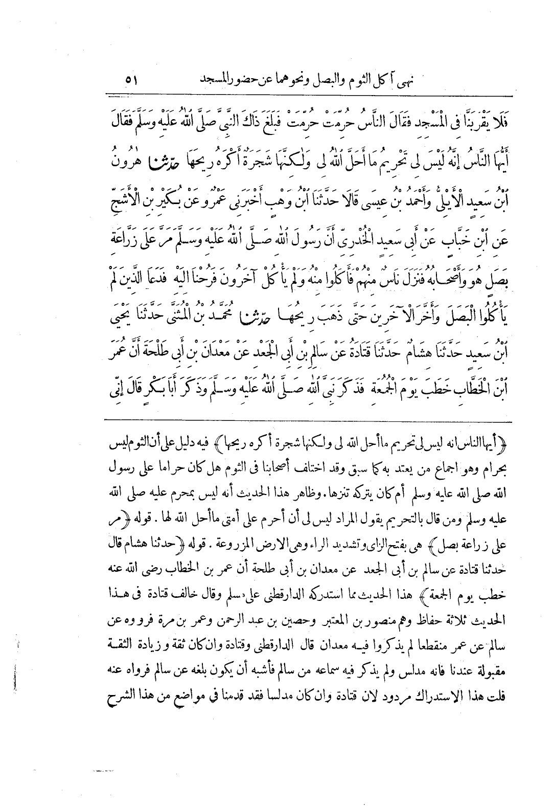 [567] قَوْلُهُ حَدَّثَنَا هِشَامٌ قَالَ حَدَّثَنَا قَتَادَةُ عَنْ سَالِمِ بْنِ أَبِي الْجَعْدِ عَنْ مَعْدَانَ بْنِ أَبِي طَلْحَةَ أَنَّ عُمَرَ بْنَ الْخَطَّابِ رَضِيَ اللَّهُ عَنْهُ خَطَبَ يَوْمَ الْجُمُعَةِ هَذَا الْحَدِيثُ مِمَّا اسْتَدْرَكَهُ الدَّارَقُطْنِيُّ عَلَى مُسْلِمٍ وَقَالَ خَالَفَ قَتَادَةُ فِي هَذَا الْحَدِيثِ ثَلَاثَةَ حُفَّاظٍ وَهُمْ مَنْصُورُ بْنُ الْمُعْتَمِرِ وَحُصَيْنُ بْنُ عَبْدِ الرَّحْمَنِ وَعُمَرُ بْنُ مُرَّةَ فَرَوَوْهُ عَنْ سَالِمٍ عَنْ عُمَرَ مُنْقَطِعًا لَمْ يَذْكُرُوا فِيهِ مَعْدَانَ قَالَ الدَّارَقُطْنِيُّ وَقَتَادَةُ وَإِنْ كَانَ ثِقَةً وَزِيَادَةُ الثِّقَةِ مَقْبُولَةٌ عِنْدَنَا فَإِنَّهُ مُدَلِّسٌ وَلَمْ يَذْكُرْ فِيهِ سَمَاعَهُ مِنْ سَالِمٍ فَأَشْبَهَ أَنْ يَكُونَ بَلَغَهُ عَنْ سَالِمٍ فَرَوَاهُ عَنْهُ قُلْتُ هَذَا الِاسْتِدْرَاكُ مَرْدُودٌ لِأَنَّ قَتَادَةَ وَإِنْ كَانَ مُدَلِّسًا فَقَدْ قَدَّمْنَا فِي مَوَاضِعَ مِنْ هَذَا الشرح