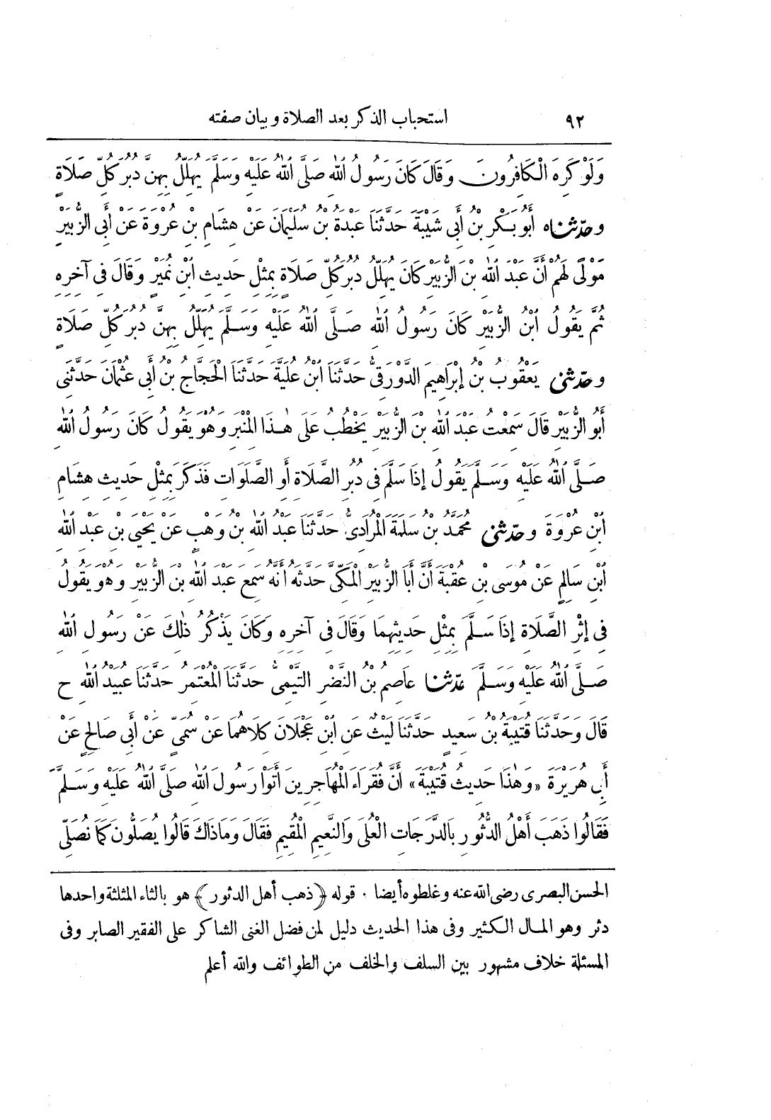[595] قَوْلُهُ ذَهَبَ أَهْلُ الدُّثُورِ هُوَ بِالثَّاءِ الْمُثَلَّثَةِ وَاحِدُهَا دَثَرٌ وَهُوَ الْمَالُ الْكَثِيرُ وَفِي هَذَا الْحَدِيثِ دَلِيلٌ لِمَنْ فَضَّلَ الْغَنِيَّ الشَّاكِرَ عَلَى الْفَقِيرِ الصَّابِرِ وَفِي الْمَسْأَلَةِ خِلَافٌ مَشْهُورٌ بَيْنَ السَّلَفِ وَالْخَلَفِ مِنَ الطَّوَائِفِ وَاللَّهُ أَعْلَمُ