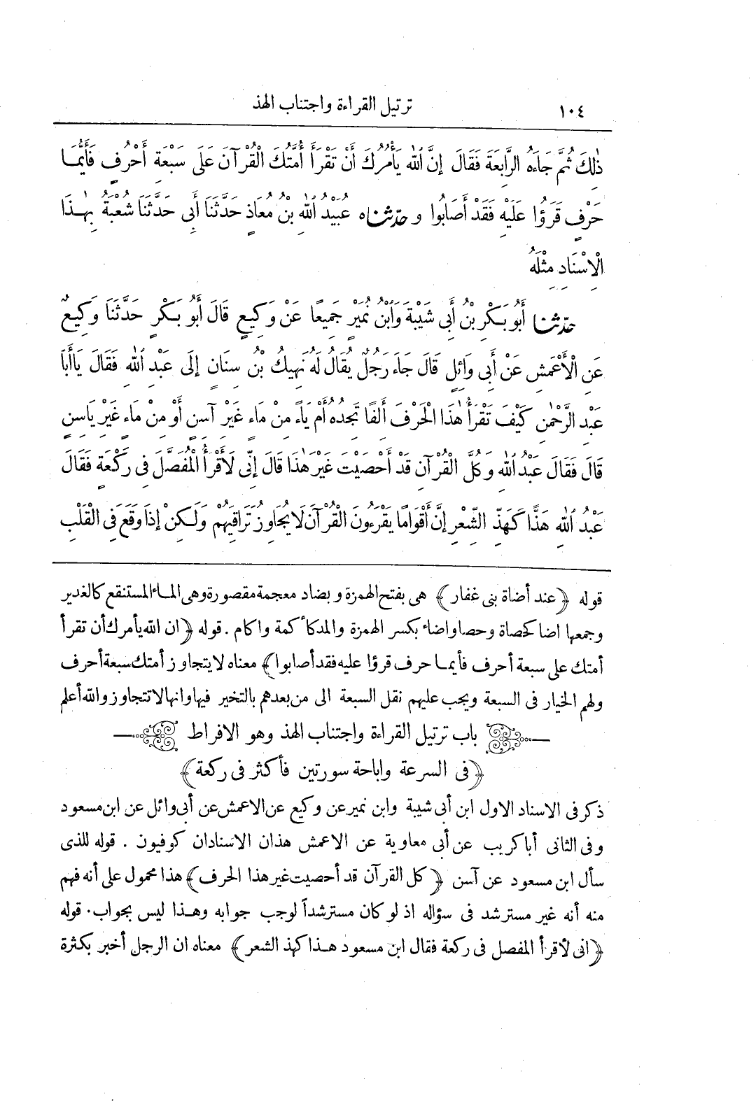 (باب تَرْتِيلِ الْقِرَاءَةِ وَاجْتِنَابِ الْهَذِّ وَهُوَ الْإِفْرَاطُ)