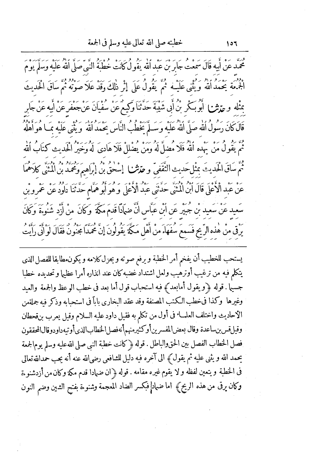 يُسْتَحَبُّ لِلْخَطِيبِ أَنْ يُفَخِّمَ أَمْرَ الْخُطْبَةِ وَيَرْفَعَ صَوْتَهُ وَيُجْزِلَ كَلَامَهُ وَيَكُونَ مُطَابِقًا لِلْفَصْلِ الَّذِي يَتَكَلَّمُ فِيهِ مِنْ تَرْغِيبٍ أَوْ تَرْهِيبٍ وَلَعَلَّ اشْتِدَادَ غَضَبِهِ كَانَ عِنْدَ إِنْذَارِهِ أَمْرًا عَظِيمًا وَتَحْدِيدِهِ خَطْبًا جَسِيمًا قَوْلُهُ وَيَقُولُ أَمَّا بَعْدُ فِيهِ اسْتِحْبَابُ قَوْلِ أَمَّا بَعْدُ فِي خُطَبِ الْوَعْظِ وَالْجُمُعَةِ وَالْعِيدِ وَغَيْرِهَا وَكَذَا فِي خُطَبِ الْكُتُبِ الْمُصَنَّفَةِ وَقَدْ عَقَدَ الْبُخَارِيُّ بَابًا فِي اسْتِحْبَابِهِ وَذَكَرَ فِيهِ جُمْلَةً مِنَ الْأَحَادِيثِ وَاخْتَلَفَ الْعُلَمَاءُ فِي أَوَّلِ مَنْ تَكَلَّمَ بِهِ فَقِيلَ دَاوُدُ عَلَيْهِ السَّلَامُ وَقِيلَ يَعْرُبُ بْنُ قَحْطَانَ وَقِيلَ قُسُّ بْنُ سَاعِدَةَ وَقَالَ بَعْضُ الْمُفَسِّرِينَ أَوْ كَثِيرٌ مِنْهُمْ إِنَّهُ فَصْلُ الْخِطَابِ الَّذِي أُوتِيَهُ دَاوُدُ وَقَالَ الْمُحَقِّقُونَ فَصْلُ الْخِطَابِ الْفَصْلُ بَيْنَ الْحَقِّ وَالْبَاطِلِ قَوْلُهُ كَانَتْ خُطْبَةُ النَّبِيِّ صَلَّى اللَّهُ عَلَيْهِ وَسَلَّمَ يَوْمَ الْجُمُعَةِ يَحْمَدُ اللَّهَ وَيُثْنِي عَلَيْهِ ثُمَّ يَقُولُ إِلَى آخِرِهِ فِيهِ دَلِيلٌ لِلشَّافِعِيِّ رَضِيَ اللَّهُ عَنْهُ أَنَّهُ يَجِبُ حَمْدُ اللَّهِ تَعَالَى فِي الْخُطْبَةِ وَيَتَعَيَّنُ لَفْظُهُ وَلَا يَقُومُ غَيْرُهُ مَقَامَهُ