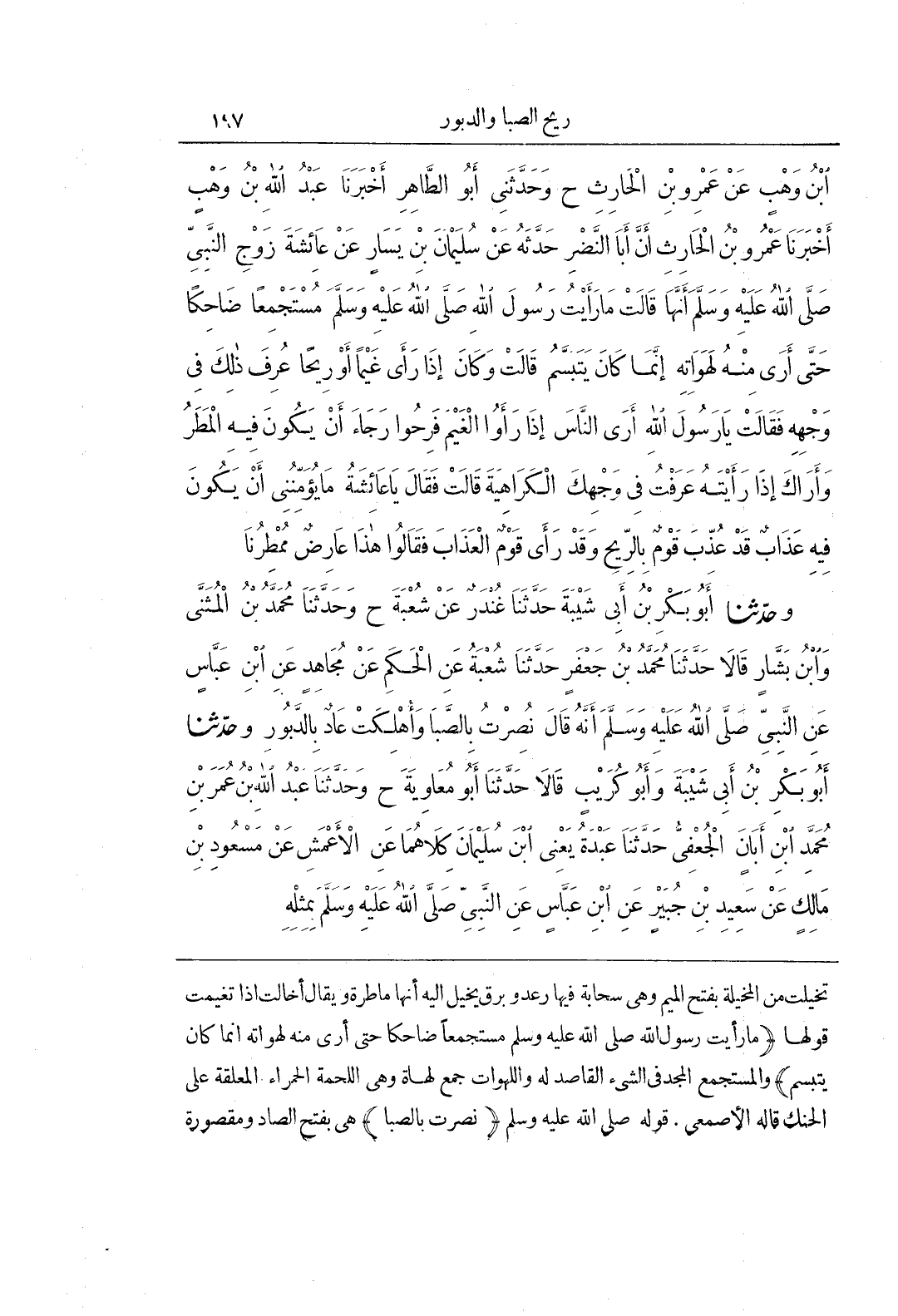 [900] قَوْلُهُ صَلَّى اللَّهُ عَلَيْهِ وَسَلَّمَ نُصِرْتُ بِالصَّبَا هِيَ بِفَتْحِ الصَّادِ وَمَقْصُورَةٌ