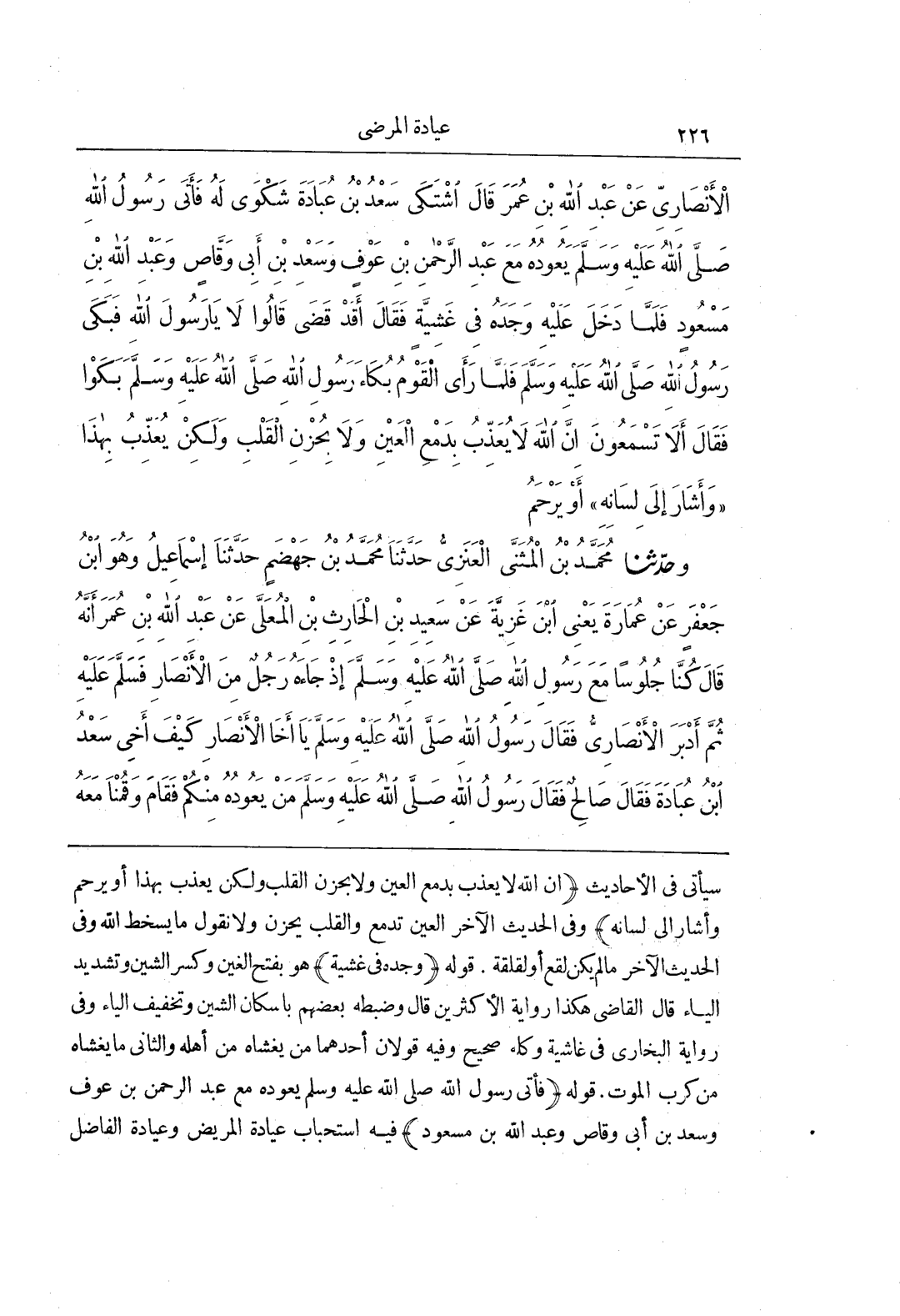 [924] قَوْلُهُ فَأَتَى رَسُولُ اللَّهِ صَلَّى اللَّهُ عَلَيْهِ وَسَلَّمَ يَعُودُهُ مَعَ عَبْدِ الرَّحْمَنِ بْنِ عَوْفٍ وَسَعْدِ بْنِ أَبِي وَقَّاصٍ وَعَبْدِ اللَّهِ بْنِ مَسْعُودٍ فِيهِ اسْتِحْبَابُ عِيَادَةِ الْمَرِيضِ وَعِيَادَةُ الْفَاضِلِ
