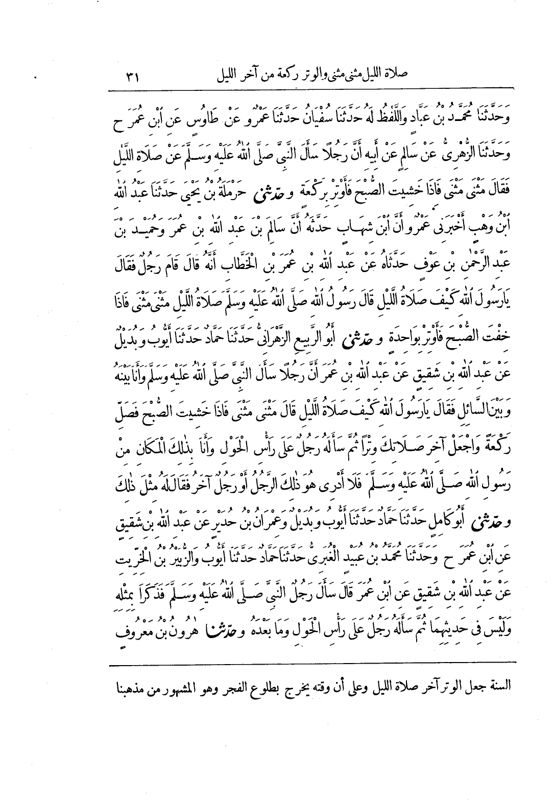السُّنَّةَ جَعْلُ الْوِتْرِ آخِرَ صَلَاةِ اللَّيْلِ وَعَلَى أَنَّ وَقْتَهُ يَخْرُجُ بِطُلُوعِ الْفَجْرِ وَهُوَ الْمَشْهُورُ من مذهبنا