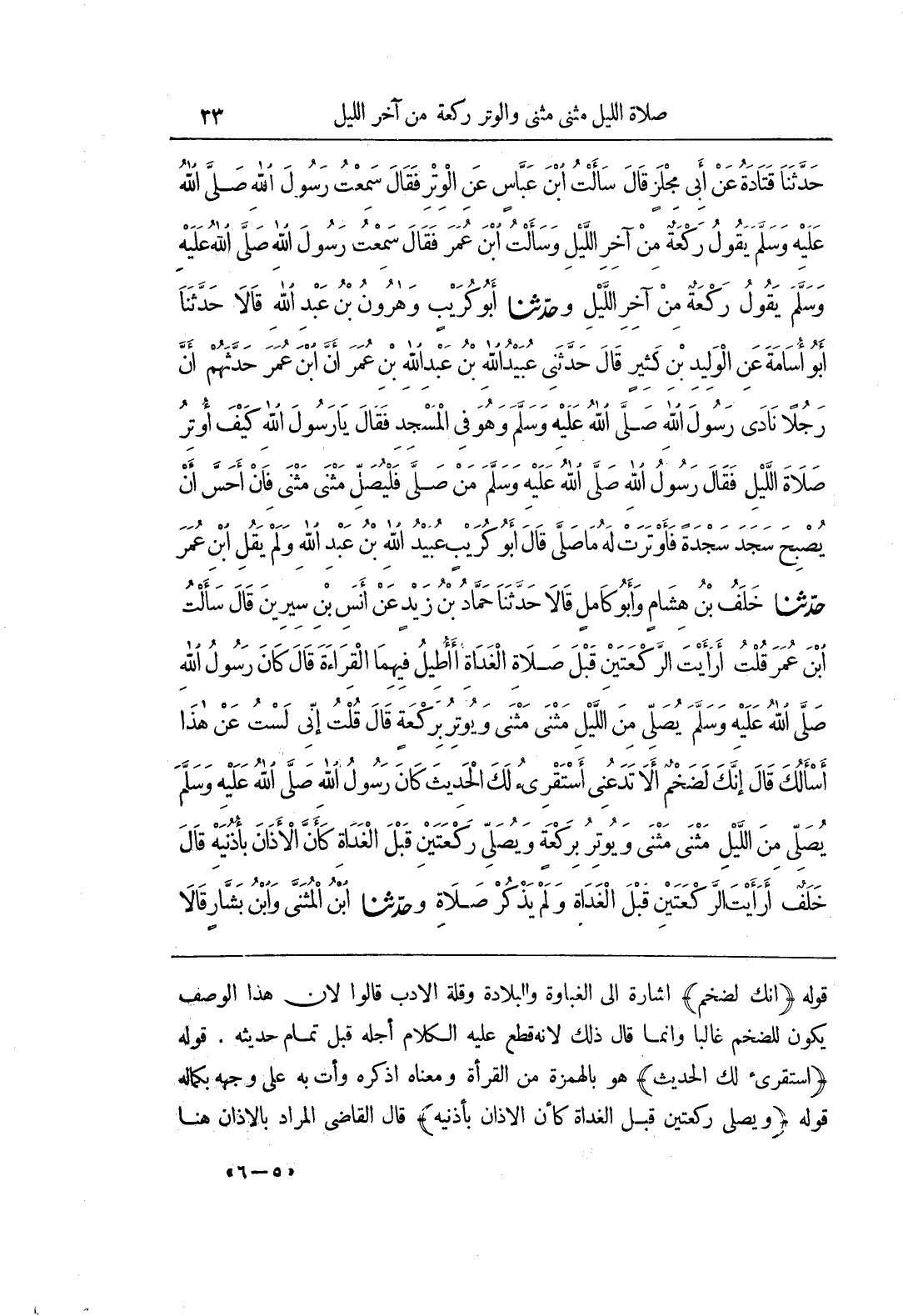 قَوْلُهُ إِنَّكَ لَضَخْمٌ إِشَارَةٌ إِلَى الْغَبَاوَةِ وَالْبَلَادَةِ وَقِلَّةِ الْأَدَبِ قَالُوا لِأَنَّ هَذَا الْوَصْفَ يَكُونُ لِلضَّخْمِ غَالِبًا وَإِنَّمَا قَالَ ذَلِكَ لِأَنَّهُ قَطَعَ عليه الكلام أجله قَبْلَ تَمَامِ حَدِيثِهِ قَوْلُهُ أَسْتَقْرِئُ لَكَ الْحَدِيثَ هو بالهمزة من القرأة ومعناه اذكره وأت بِهِ عَلَى وَجْهِهِ بِكَمَالِهِ قَوْلُهُ وَيُصَلِّي رَكْعَتَيْنِ قَبْلَ الْغَدَاةِ كَانَ الْأَذَانُ بِأُذُنَيْهِ قَالَ الْقَاضِي المراد بالأذان هنا