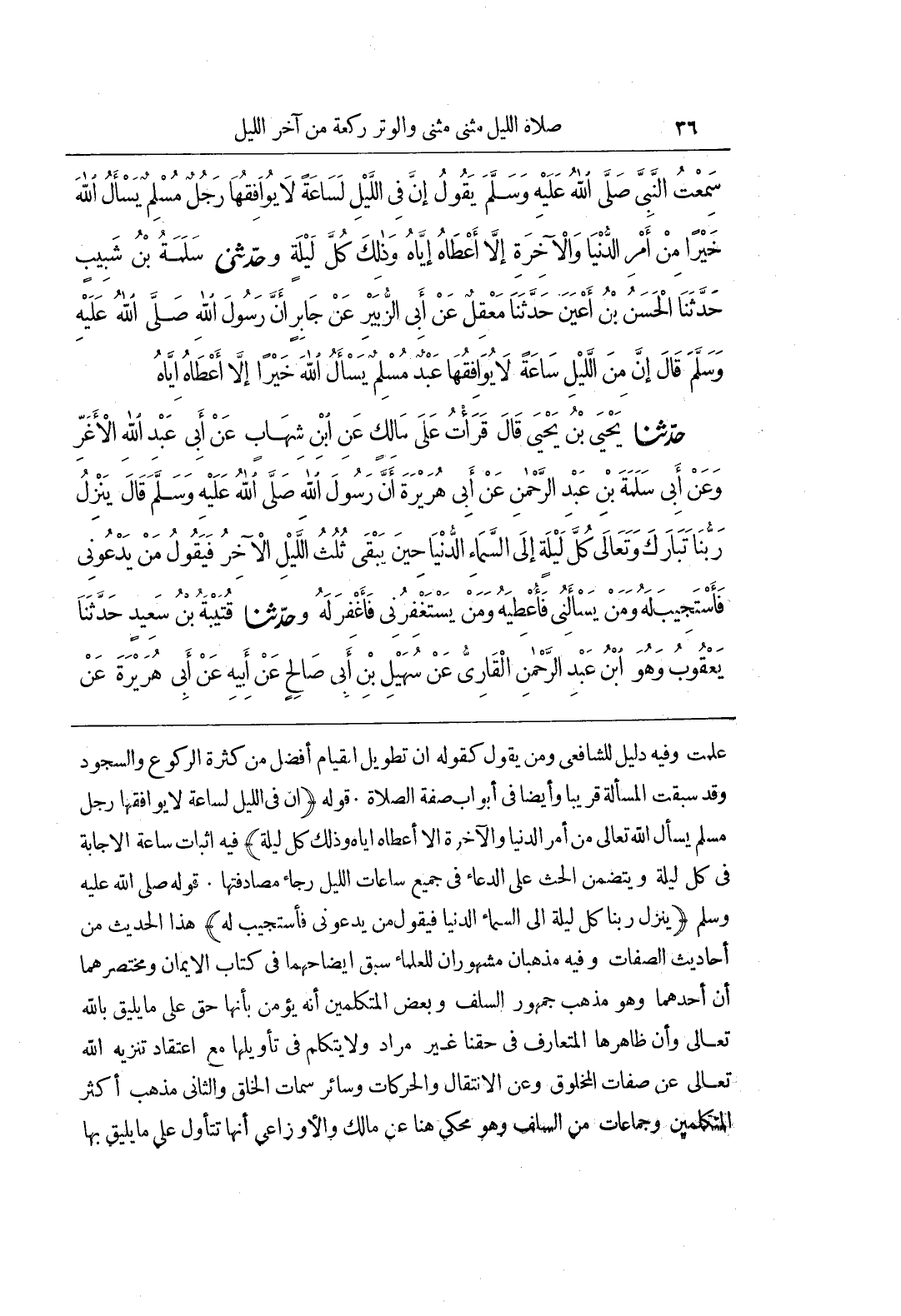 [758] قَوْلُهُ صَلَّى اللَّهُ عَلَيْهِ وَسَلَّمَ يَنْزِلُ رَبُّنَا كُلَّ لَيْلَةٍ إِلَى السَّمَاءِ الدُّنْيَا فَيَقُولُ مَنْ يَدْعُونِي فَأَسْتَجِيبَ لَهُ هَذَا الْحَدِيثُ مِنْ أحَادِيثِ الصِّفَاتِ وَفِيهِ مَذْهَبَانِ مَشْهُورَانِ لِلْعُلَمَاءِ سَبَقَ إِيضَاحُهُمَا فِي كِتَابِ الْإِيمَانِ وَمُخْتَصَرُهُمَا أَنَّ أَحَدُهُمَا وَهُوَ مَذْهَبُ جُمْهُورِ السَّلَفِ وَبَعْضِ الْمُتَكَلِّمِينَ أَنَّهُ يُؤْمِنُ بِأَنَّهَا حَقٌّ عَلَى مَا يَلِيقُ بِاللَّهِ تَعَالَى وَأَنَّ ظَاهِرَهَا الْمُتَعَارَفُ فِي حَقِّنَا غَيْرُ مُرَادٍ وَلَا يَتَكَلَّمُ فِي تَأْوِيلِهَا مَعَ اعْتِقَادِ تَنْزِيهِ اللَّهِ تَعَالَى عَنْ صِفَاتِ الْمَخْلُوقِ وَعَنِ الِانْتِقَالِ والحركات وسائر سمات الخلق والثاني مذهب أكثرالمتكلمين وَجَمَاعَاتٍ مِنَ السَّلَفِ وَهُوَ مَحْكِيٌّ هُنَا عَنْ مَالِكٍ وَالْأَوْزَاعِيِّ أَنَّهَا تُتَأَوَّلُ عَلَى مَا يَلِيقُ بها