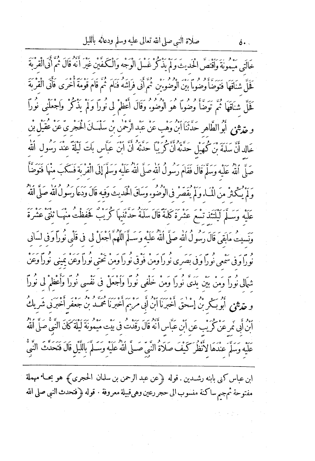 بن عَبَّاسٍ كُنِّيَ بِابْنِهِ رِشْدِينَ قَوْلُهُ عَنْ عَبْدِ الرَّحْمَنِ بْنِ سَلْمَانَ الْحَجْرِيِّ هُوَ بِحَاءٍ مُهْمَلَةٍ مَفْتُوحَةٍ ثُمَّ جِيمٍ سَاكِنَةٍ مَنْسُوبٌ إِلَى حَجْرِ رُعَيْنٍ وَهِيَ قَبِيلَةٌ مَعْرُوفَةٌ قَوْلُهُ فَتَحَدَّثَ النَّبِيُّ صَلَّى اللَّهُ عَلَيْهِ وَسَلَّمَ