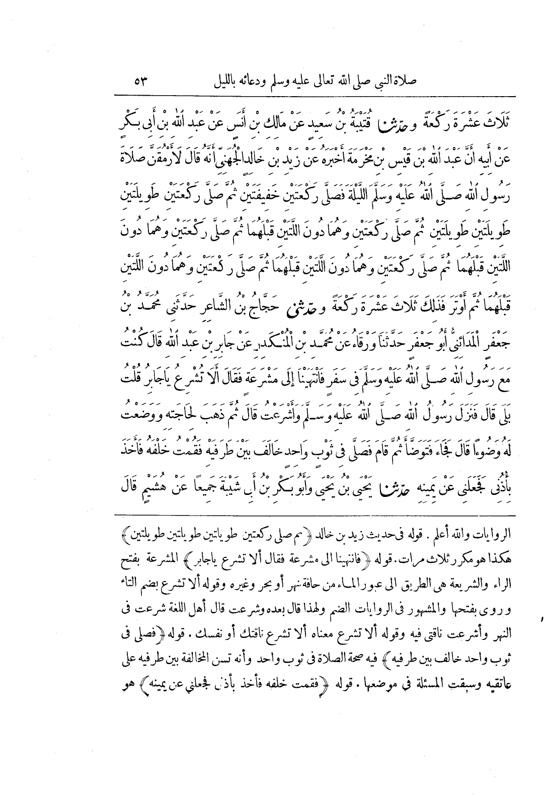 [766] قَوْلُهُ فَانْتَهَيْنَا إِلَى مَشْرَعَةٍ فَقَالَ أَلَا تُشْرِعُ يَا جَابِرُ الْمَشْرَعَةُ بِفَتْحِ الرَّاءِ وَالشَّرِيعَةُ هِيَ الطَّرِيقُ إِلَى عُبُورِ الْمَاءِ مِنْ حَافَّةِ نَهَرٍ أَوْ بحر وغيره وقوله أَلَا تُشْرِعُ بِضَمِّ التَّاءِ وَرُوِيَ بِفَتْحِهَا وَالْمَشْهُورُ فِي الرِّوَايَاتِ الضَّمُّ وَلِهَذَا قَالَ بَعْدَهُ وَشَرَعْتُ قَالَ أَهْلُ اللُّغَةِ شَرَعْتُ فِي النَّهَرِ وَأَشْرَعَتْ نَاقَتِي فِيهِ وَقَوْلُهُ أَلَا تُشْرِعُ مَعْنَاهُ أَلَا تُشْرِعُ نَاقَتَكَ أَوْ نَفْسَكَ قَوْلُهُ فَصَلَّى فِي ثَوْبٍ وَاحِدٍ خَالَفَ بَيْنَ طَرَفَيْهِ فِيهِ صِحَّةُ الصَّلَاةِ فِي ثَوْبٍ وَاحِدٍ وَأَنَّهُ تُسَنُّ الْمُخَالَفَةُ بَيْنَ طَرَفَيْهِ عَلَى عَاتِقَيْهِ وَسَبَقَتِ الْمَسْأَلَةُ فِي مَوْضِعِهَا قَوْلُهُ فَقُمْتُ خَلْفَهُ فَأَخَذَ بِأُذُنِي فَجَعَلَنِي عن يمينه هو