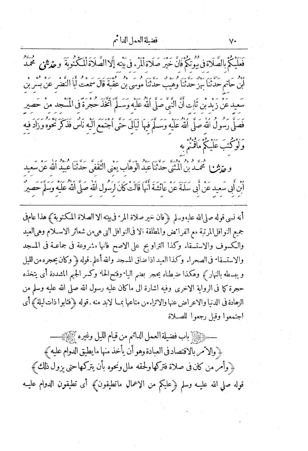 (باب فَضِيلَةِ الْعَمَلِ الدَّائِمِ مِنْ قِيَامِ اللَّيْلِ وغيره)