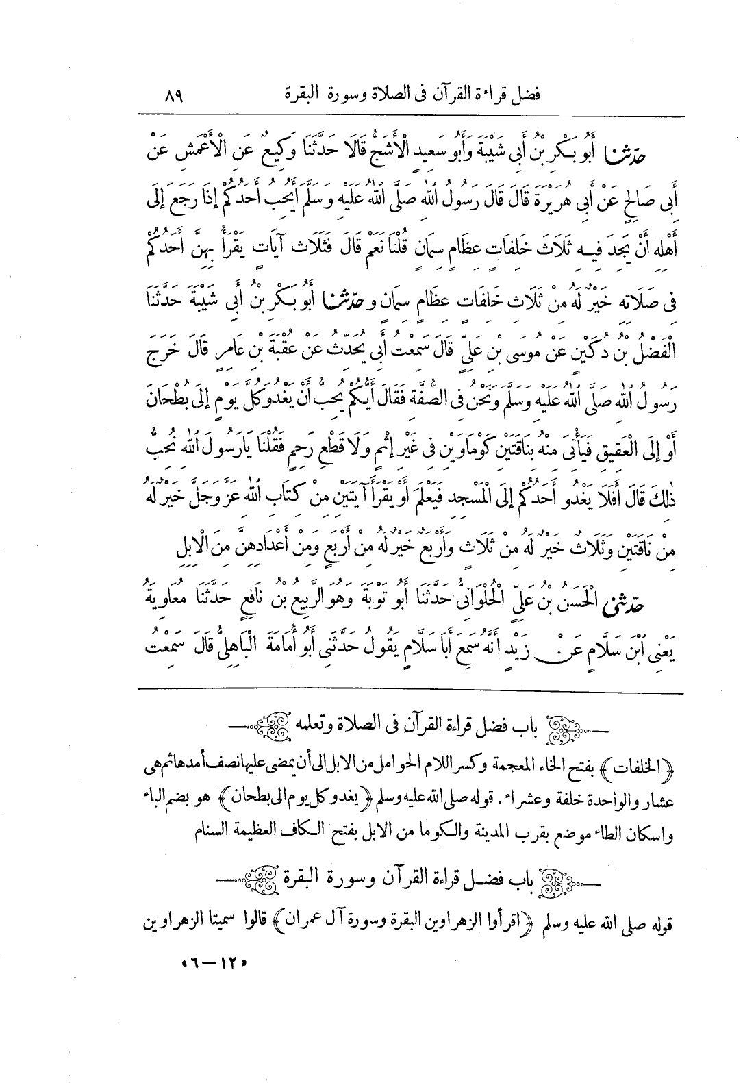 [804] قَوْلُهُ صلى الله عليه وسلم اقرؤوا الزَّهْرَاوَيْنِ الْبَقَرَةَ وَسُورَةَ آلِ عِمْرَانَ قَالُوا سُمِّيَتَا الزهراوين
