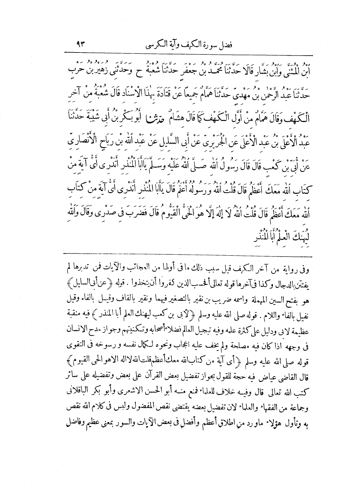 [810] قَوْلُهُ عَنْ أَبِي السَّلِيلِ هُوَ بِفَتْحِ السِّينِ الْمُهْمَلَةِ وَاسْمُهُ ضُرَيْبُ بْنُ نُقَيْرٍ بِالتَّصْغِيرِ فِيهِمَا وَنُقَيْرٌ بِالْقَافِ وَقِيلَ بِالْفَاءِ وَقِيلَ نُفَيْلٌ بِالْفَاءِ وَاللَّامِ قَوْلُهُ صَلَّى اللَّهُ عَلَيْهِ وَسَلَّمَ لِأُبَيِّ بْنِ كَعْبٍ لِيَهْنِكَ الْعِلْمُ أَبَا الْمُنْذِرِ فِيهِ مَنْقَبَةٌ عَظِيمَةٌ لِأُبَيٍّ وَدَلِيلٌ عَلَى كَثْرَةِ عِلْمِهِ وَفِيهِ تَبْجِيلُ الْعَالِمِ فُضَلَاءَ أَصْحَابِهِ وَتَكْنِيَتُهُمْ وَجَوَازُ مَدْحِ الْإِنْسَانِ فِي وَجْهِهِ إِذَا كَانَ فِيهِ مَصْلَحَةٌ وَلَمْ يُخَفْ عَلَيْهِ إِعْجَابٌ وَنَحْوُهُ لِكَمَالِ نَفْسِهِ وَرُسُوخِهِ فِي التَّقْوَى قَوْلُهُ صَلَّى اللَّهُ عَلَيْهِ وَسَلَّمَ أَيُّ آيَةٍ مِنْ كِتَابِ اللَّهِ مَعَكَ أَعْظَمُ قُلْتُ اللَّهُ لَا إِلَهَ إِلَّا هُوَ الْحَيُّ الْقَيُّومُ قَالَ الْقَاضِي عِيَاضٌ فِيهِ حُجَّةٌ لِلْقَوْلِ بِجَوَازِ تَفْضِيلِ بَعْضِ الْقُرْآنِ عَلَى بَعْضٍ وَتَفْضِيلِهِ عَلَى سَائِرِ كُتُبِ اللَّهِ تَعَالَى قَالَ وَفِيهِ خِلَافٌ لِلْعُلَمَاءِ فَمَنَعَ مِنْهُ أَبُو الْحَسَنِ الْأَشْعَرِيُّ وَأَبُو بَكْرٍ الْبَاقِلَّانِيُّ وَجَمَاعَةٌ مِنَ الْفُقَهَاءِ وَالْعُلَمَاءِ لِأَنَّ تَفْضِيلَ بَعْضِهِ يَقْتَضِي نَقْصَ الْمَفْضُولِ وَلَيْسَ فِي كَلَامِ اللَّهِ نَقْصٌ بِهِ وَتَأَوَّلَ هَؤُلَاءِ مَا وَرَدَ مِنْ إِطْلَاقِ أَعْظَمِ وَأَفْضَلِ فِي بَعْضِ الْآيَاتِ وَالسُّوَرِ بِمَعْنًى عَظِيمٍ وفاضل