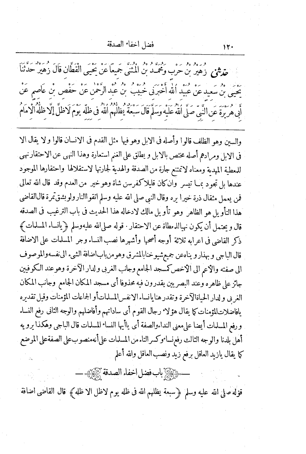 [1031] قَوْلُهُ صَلَّى اللَّهُ عَلَيْهِ وَسَلَّمَ (سَبْعَةٌ يُظِلُّهُمُ اللَّهُ فِي ظِلِّهِ يَوْمَ لَا ظِلَّ إِلَّا ظِلُّهُ) قَالَ الْقَاضِي اضافة