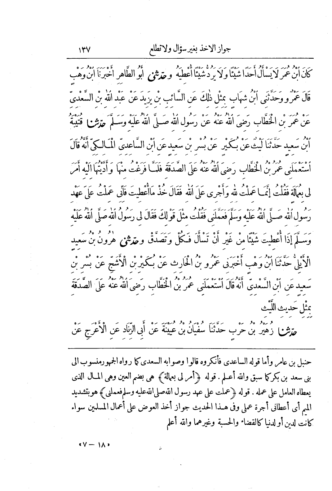 حَنْبَلِ بْنِ عَامِرٍ وَأَمَّا قَوْلُهُ السَّاعِدِيُّ فَأَنْكَرُوهُ قَالُوا وَصَوَابُهُ السَّعْدِيُّ كَمَا رَوَاهُ الْجُمْهُورُ مَنْسُوبٌ إِلَى بَنِي سَعْدِ بْنِ بَكْرٍ كَمَا سَبَقَ وَاللَّهُ أَعْلَمُ قَوْلُهُ (أَمَرَ لِي بِعُمَالَةٍ) هِيَ بِضَمِّ الْعَيْنِ وَهِيَ الْمَالُ الَّذِي يُعْطَاهُ الْعَامِلُ عَلَى عَمَلِهِ قَوْلُهُ (عَمِلْتُ عَلَى عَهْدِ رَسُولِ اللَّهِ صَلَّى اللَّهُ عَلَيْهِ وَسَلَّمَ فَعَمَّلَنِي) هُوَ بِتَشْدِيدِ الْمِيمِ أَيْ أَعْطَانِي أُجْرَةَ عَمَلِي وَفِي هَذَا الْحَدِيثِ جَوَازُ أَخْذِ الْعِوَضِ عَلَى أَعْمَالِ الْمُسْلِمِينَ سَوَاءٌ كَانَتْ لِدَيْنٍ أَوْ لِدُنْيَا كَالْقَضَاءِ وَالْحِسْبَةِ وَغَيْرِهِمَا وَاللَّهُ أَعْلَمُ