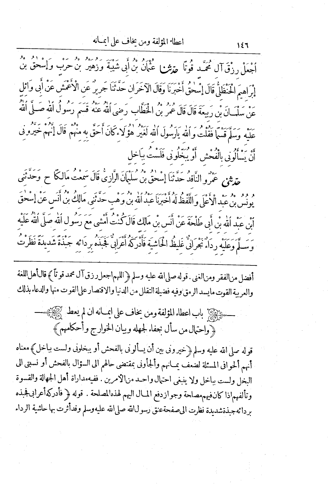 (باب اعطاء المؤلفة ومن يخاف على ايمانه ان لم يعط)