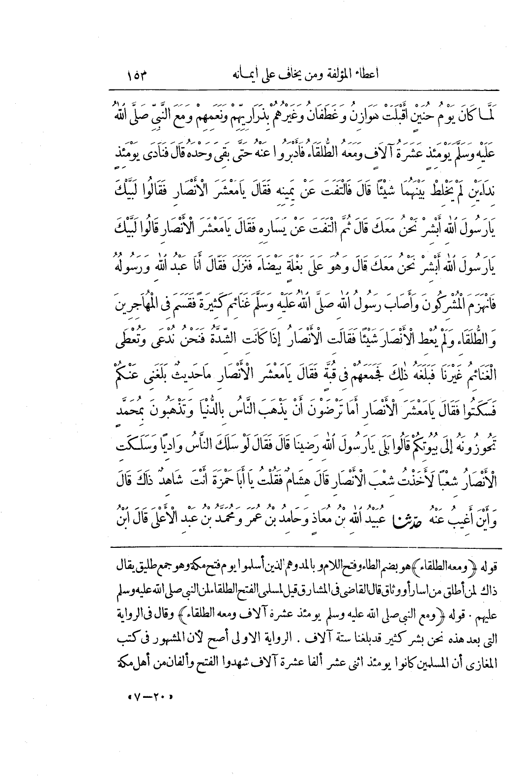 قَوْلُهُ (وَمَعَهُ الطُّلَقَاءُ) هُوَ بِضَمِّ الطَّاءِ وَفَتْحِ اللَّامِ وَبِالْمَدِّ وَهُمُ الَّذِينَ أَسْلَمُوا يَوْمَ فَتْحِ مَكَّةَ وَهُوَ جَمْعُ طَلِيقٍ يُقَالُ ذَاكَ لِمَنْ أُطْلِقَ مِنْ إِسَارٍ أَوْ وَثَاقٍ قَالَ الْقَاضِي فِي الْمَشَارِقِ قِيلَ لِمُسْلِمِي الْفَتْحِ الطُّلَقَاءُ لِمَنِّ النَّبِيِّ صَلَّى اللَّهُ عَلَيْهِ وَسَلَّمَ عَلَيْهِمْ قَوْلُهُ (وَمَعَ النَّبِيِّ صَلَّى اللَّهُ عَلَيْهِ وَسَلَّمَ يَوْمئِذٍ عَشَرَةُ آلَافٍ وَمَعَهُ الطُّلَقَاءُ) وَقَالَ فِي الرِّوَايَةِ الَّتِي بَعْدَ هَذِهِ نَحْنُ بَشَرٌ كَثِيرٌ قَدْ بَلَغْنَا سِتَّةَ آلَافٍ الرِّوَايَةُ الْأُولَى أَصَحُّ لِأَنَّ الْمَشْهُورَ فِي كُتُبِ الْمَغَازِي أَنَّ الْمُسْلِمِينَ كَانُوا يَوْمَئِذٍ اثْنَيْ عَشَرَ أَلْفًا عَشَرَةُ آلَافٍ شَهِدُوا الْفَتْحَ وَأَلْفَانِ مِنْ أَهْلِ مَكَّةَ