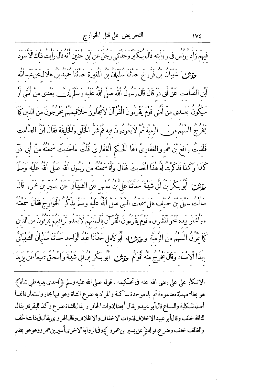 الْإِنْكَارَ عَلَى عَلِيٍّ رَضِيَ اللَّهُ عَنْهُ فِي تَحْكِيمِهِ قَوْلُهُ صَلَّى اللَّهُ عَلَيْهِ وَسَلَّمَ (إِحْدَى يَدَيْهِ طُبْيُ شَاةٍ) هُوَ بِطَاءٍ مُهْمَلَةٍ مَضْمُومَةٍ ثُمَّ بَاءٍ مُوَحَّدَةٍ سَاكِنَةٍ وَالْمُرَادُ بِهِ ضَرْعُ الشَّاةٍ وَهُوَ فِيهَا مَجَازٌ وَاسْتِعَارَةٌ إِنَّمَا أَصْلُهُ لِلْكَلْبَةِ وَالسِّبَاعِ قَالَ أَبُو عُبَيْدٍ وَيُقَالُ أَيْضًا لِذَوَاتِ الْحَافِرِ وَيُقَالُ لِلشَّاةِ ضَرْعٌ وَكَذَا لِلْبَقَرَةِ ويقال للناقة خلف وقال أبو عبيد الْأَخْلَافُ لِذَوَاتِ الْأَخْفَافِ وَالْأَظْلَافُ وَقَالَ الْهَرَوِيُّ يُقَالُ في ذات الخف والظلف خلف وضرع قَوْلُهُ (عَنْ يُسَيْرِ بْنِ عَمْرٍو) وَفِي الرِّوَايَةِ الْأُخْرَى أُسَيْرِ بْنِ عَمْرٍو وَهُوَ بِضَمِّ