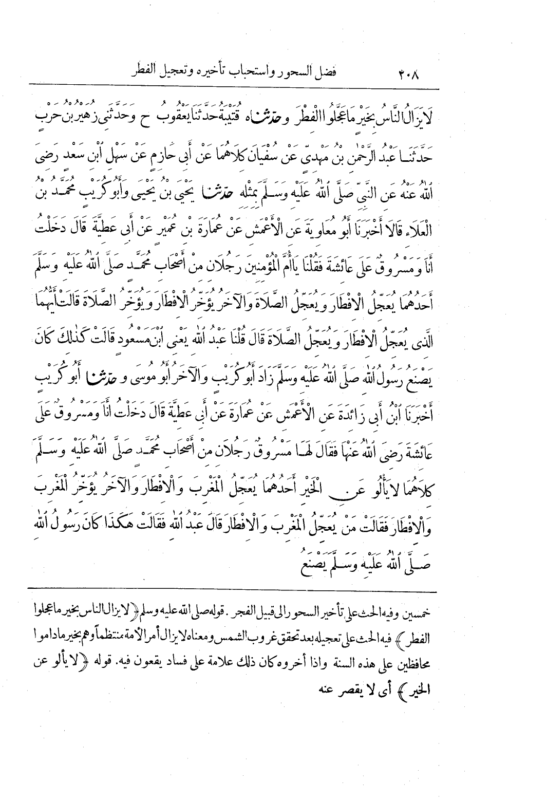 خَمْسِينَ وَفِيهِ الْحَثُّ عَلَى تَأْخِيرِ السُّحُورِ إِلَى قُبَيْلِ الْفَجْرِ