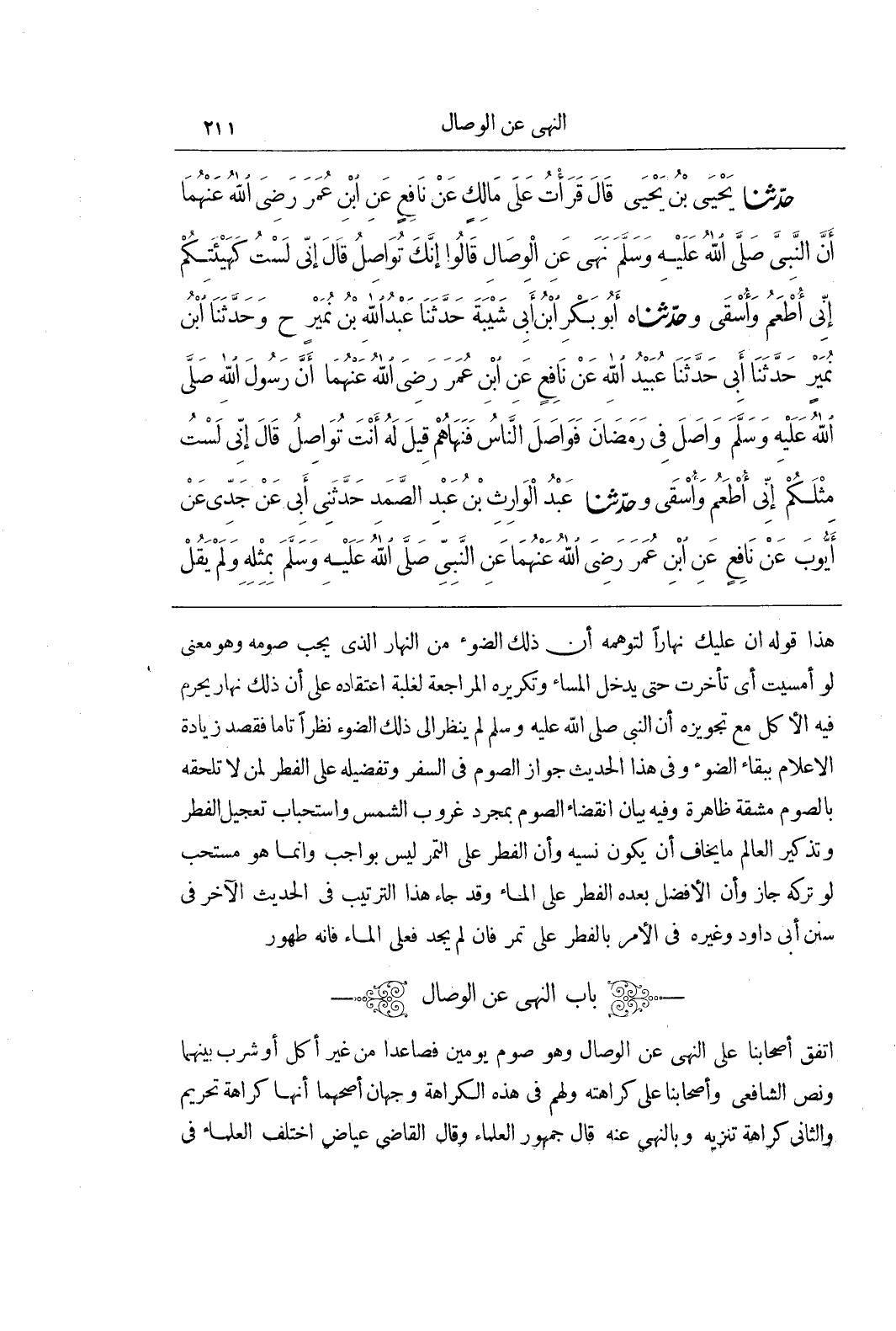 اتَّفَقَ أَصْحَابُنَا عَلَى النَّهْيِ عَنِ الْوِصَالِ وَهُوَ صَوْمُ يَوْمَيْنِ فَصَاعِدًا مِنْ غَيْرِ أَكْلٍ أَوْ شُرْبٍ بَيْنَهُمَا وَنَصَّ الشَّافِعِيُّ وَأَصْحَابُنَا عَلَى كَرَاهَتِهِ وَلَهُمْ فِي هَذِهِ الْكَرَاهَةِ وَجْهَانِ أَصَحُّهُمَا أَنَّهَا كَرَاهَةُ تَحْرِيمٍ وَالثَّانِي كَرَاهَةُ تَنْزِيهٍ وَبِالنَّهْيِ عَنْهُ قَالَ جُمْهُورُ الْعُلَمَاءِ وَقَالَ الْقَاضِي عِيَاضٌ اخْتَلَفَ الْعُلَمَاءُ فِي