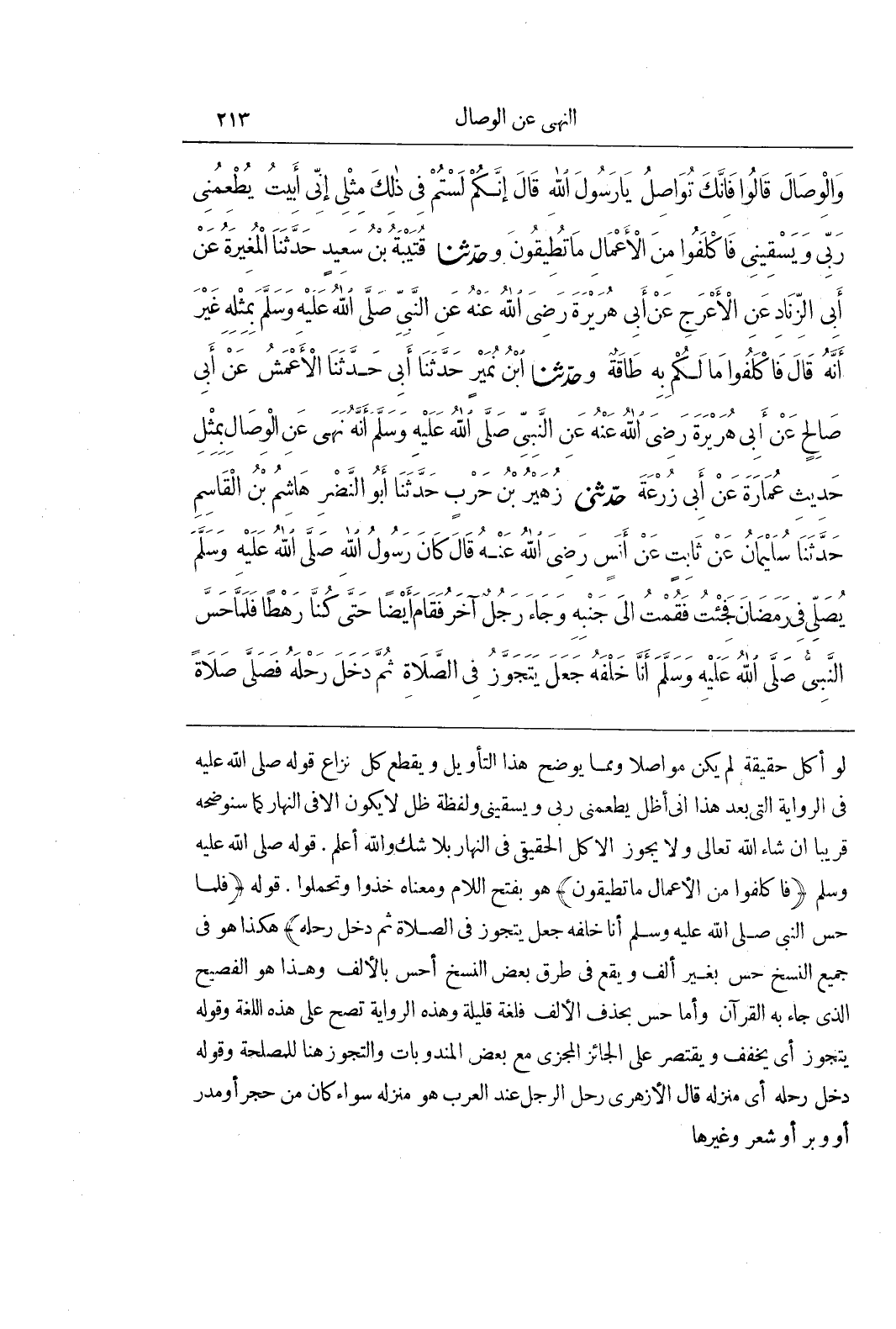 لَوْ أَكَلَ حَقِيقَةً لَمْ يَكُنْ مُوَاصِلًا وَمِمَّا يُوَضِّحُ هَذَا التَّأْوِيلَ وَيَقْطَعُ كُلَّ نِزَاعٍ قَوْلُهُ صَلَّى اللَّهُ عَلَيْهِ وَسَلَّمَ فِي الرِّوَايَةِ الَّتِي بَعْدَ هَذَا إِنِّي أَظَلُّ يُطْعِمُنِي رَبِّي وَيَسْقِينِي وَلَفْظَةُ ظَلَّ لَا يَكُونُ إِلَّا فِي النَّهَارِ كَمَا سَنُوَضِّحُهُ قَرِيبًا إِنْ شَاءَ اللَّهُ تَعَالَى وَلَا يَجُوزُ الْأَكْلُ الْحَقِيقِيُّ فِي النَّهَارِ بِلَا شَكٍّ وَاللَّهُ أَعْلَمُ قَوْلُهُ صَلَّى اللَّهُ عَلَيْهِ وَسَلَّمَ (فَاكْلَفُوا مِنَ الْأَعْمَالِ مَا تُطِيقُونَ) هُوَ بِفَتْحِ اللَّامِ وَمَعْنَاهُ خُذُوا وَتَحَمَّلُوا